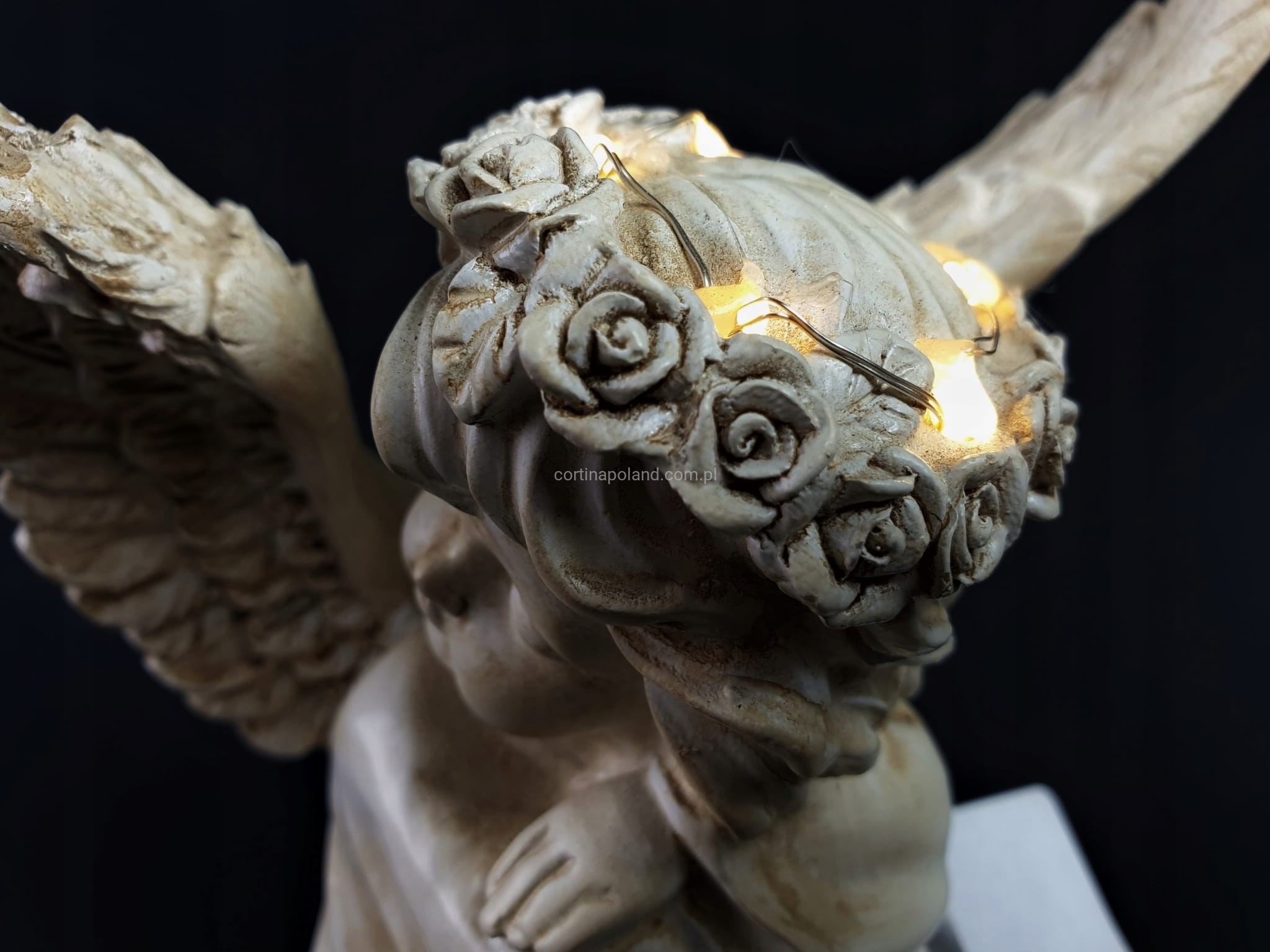 Dzięki zastosowaniu energooszczędnej diody Led jako źródło światła prezentuje niesamowity efekt oświetlając postać Aniołka w kolorze ciepłym białym .