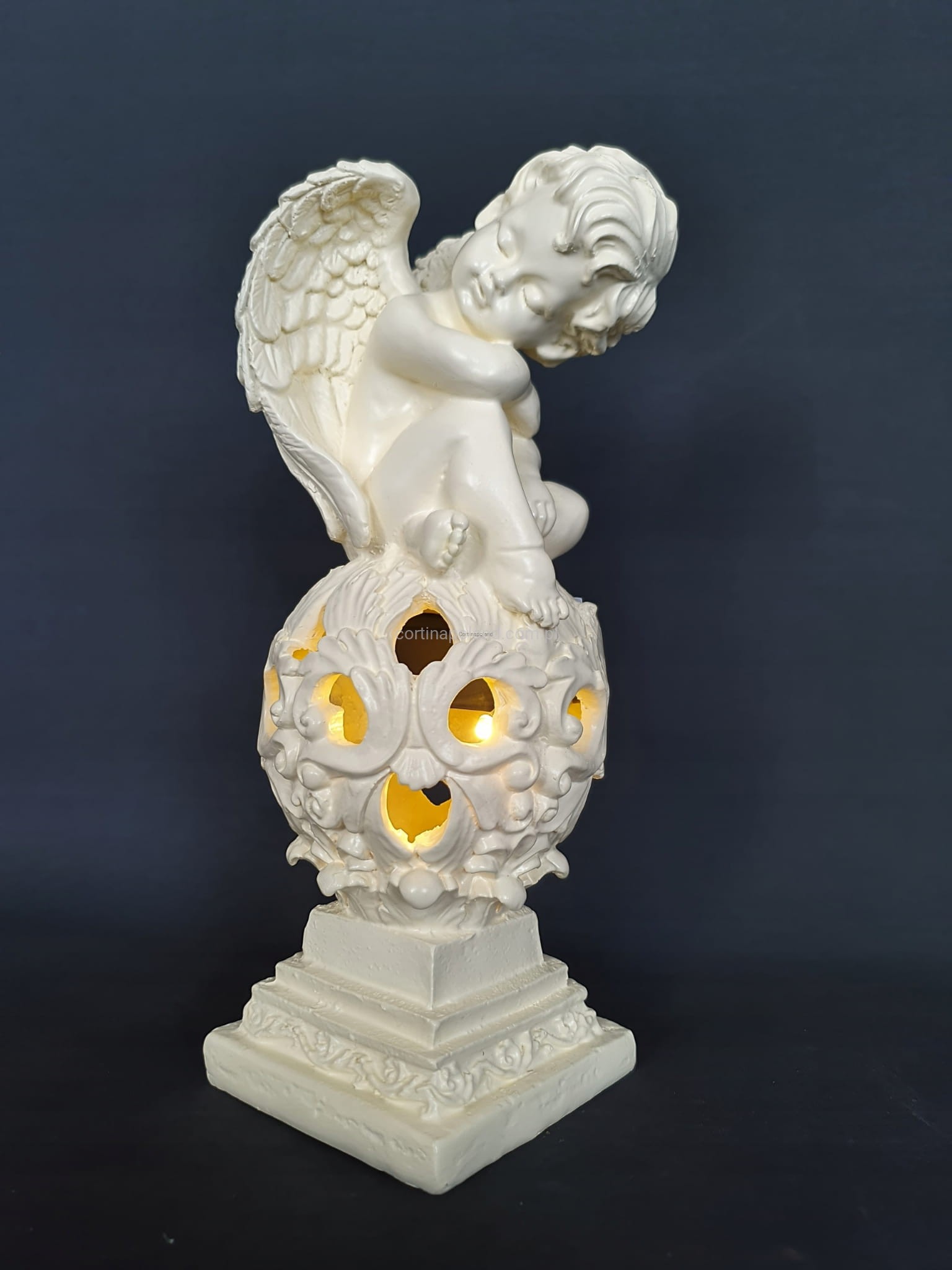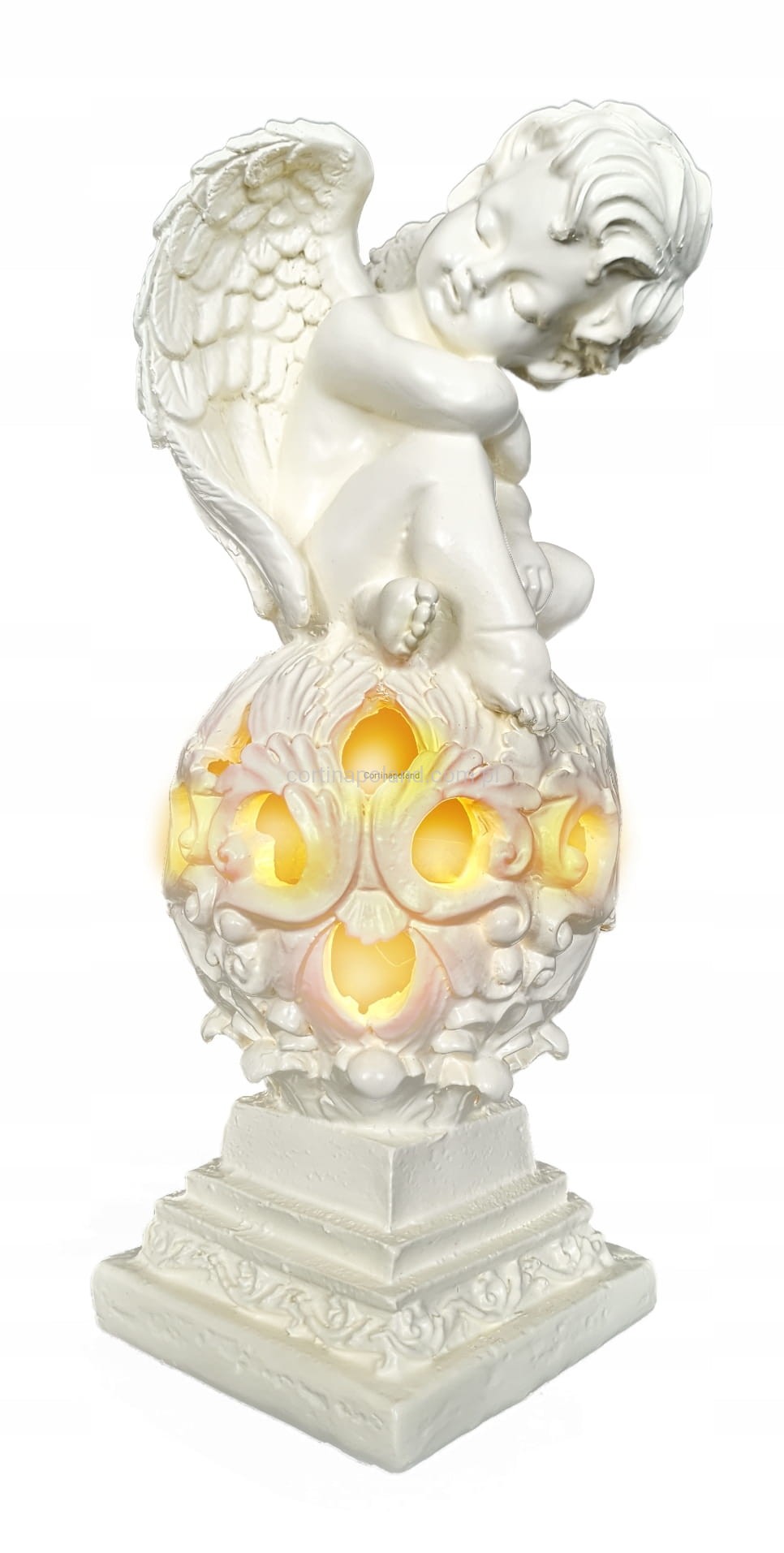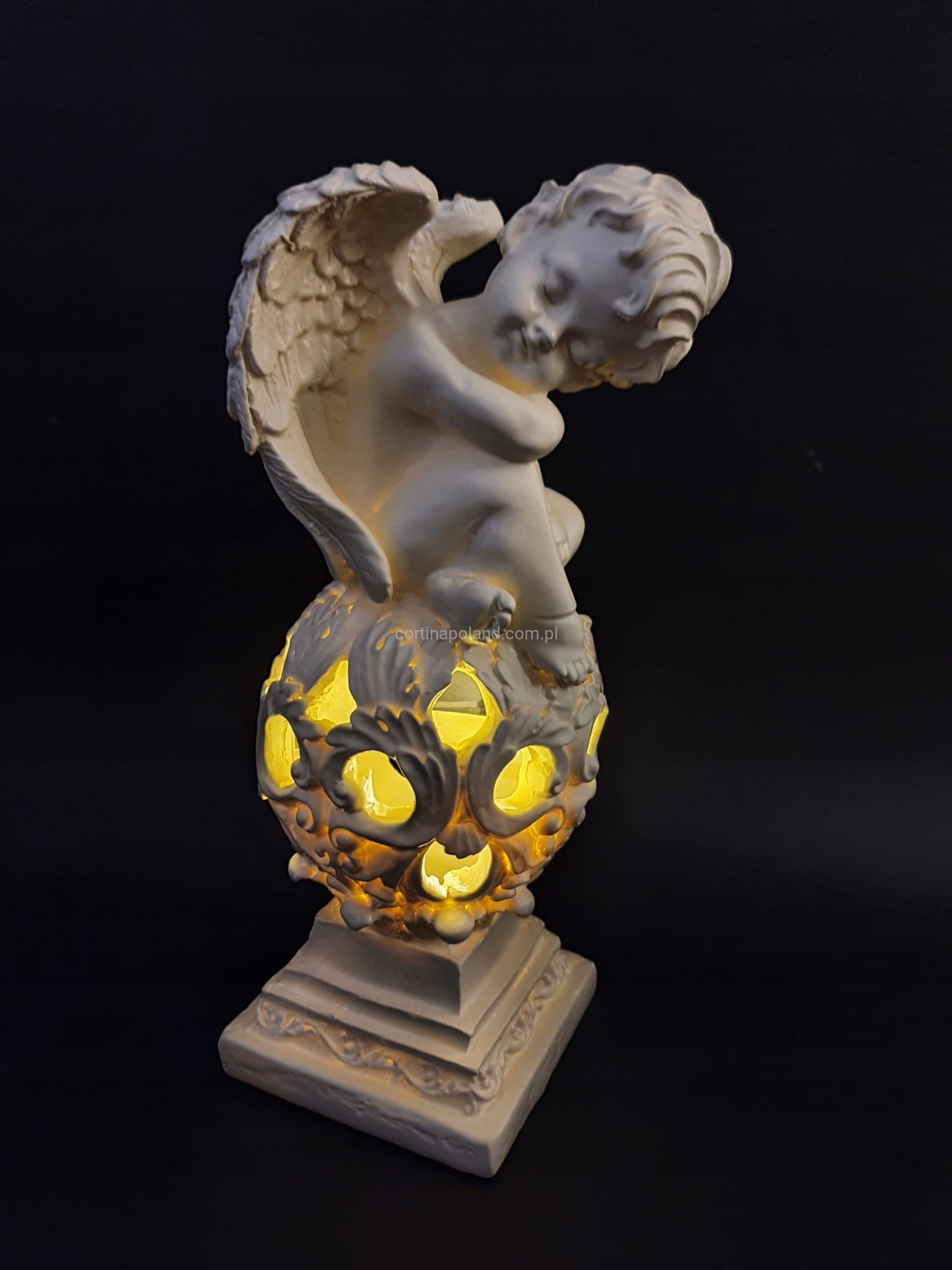 Dzięki zastosowaniu energooszczędnej diody Led jako źródło światła prezentuje niesamowity efekt oświetlając postać Aniołka w kolorze ciepłym białym .