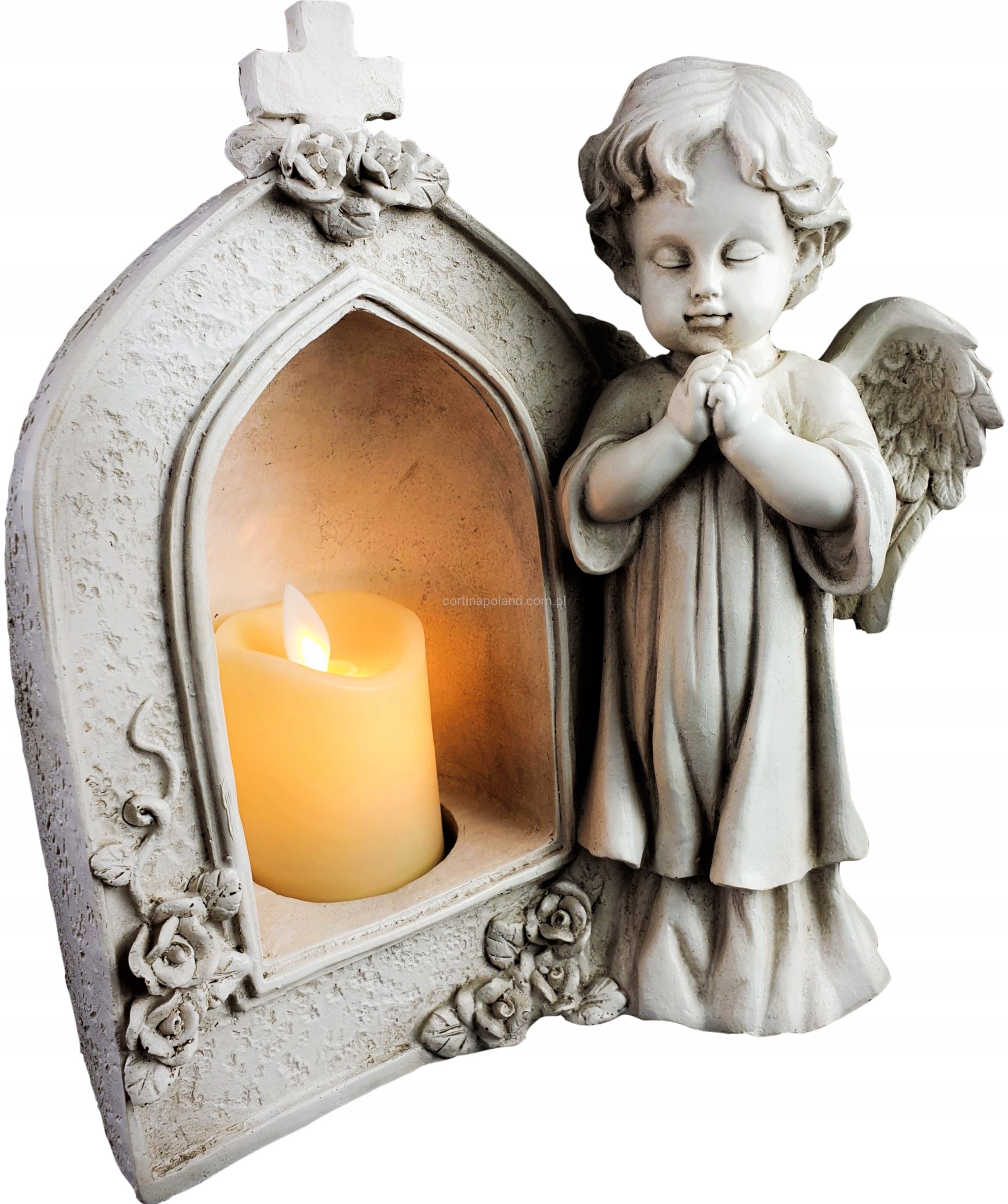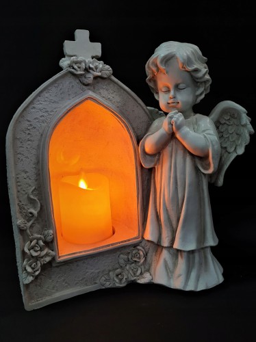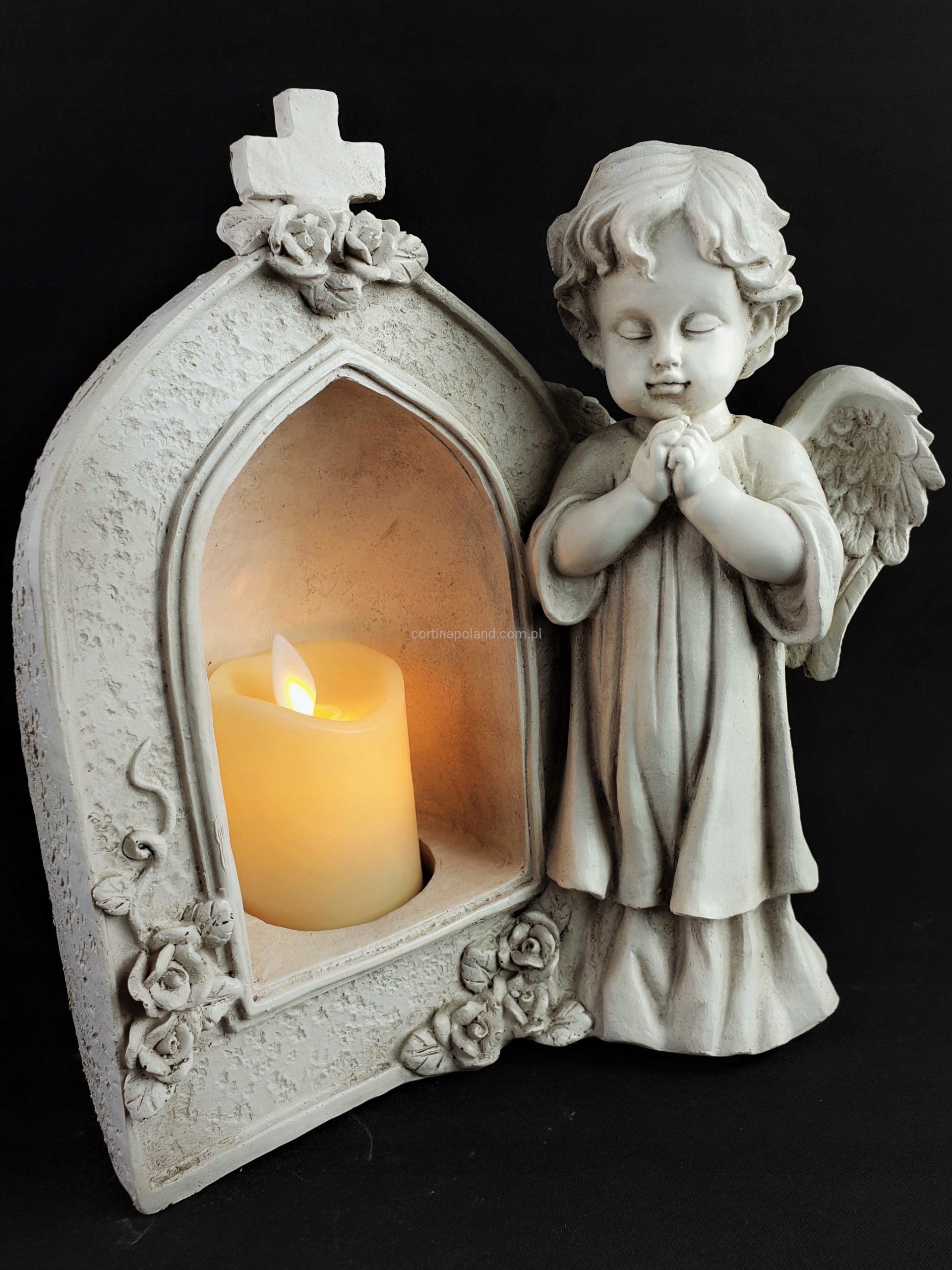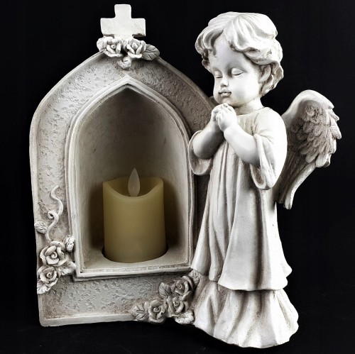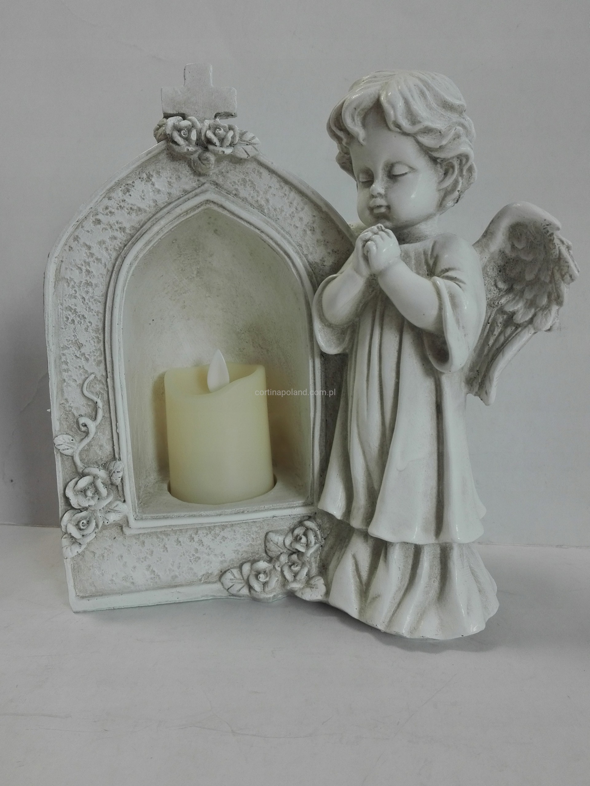 ANIOŁEK Z KAPLICZKĄ I ŚWIECĄ LED W ZESTAWIE