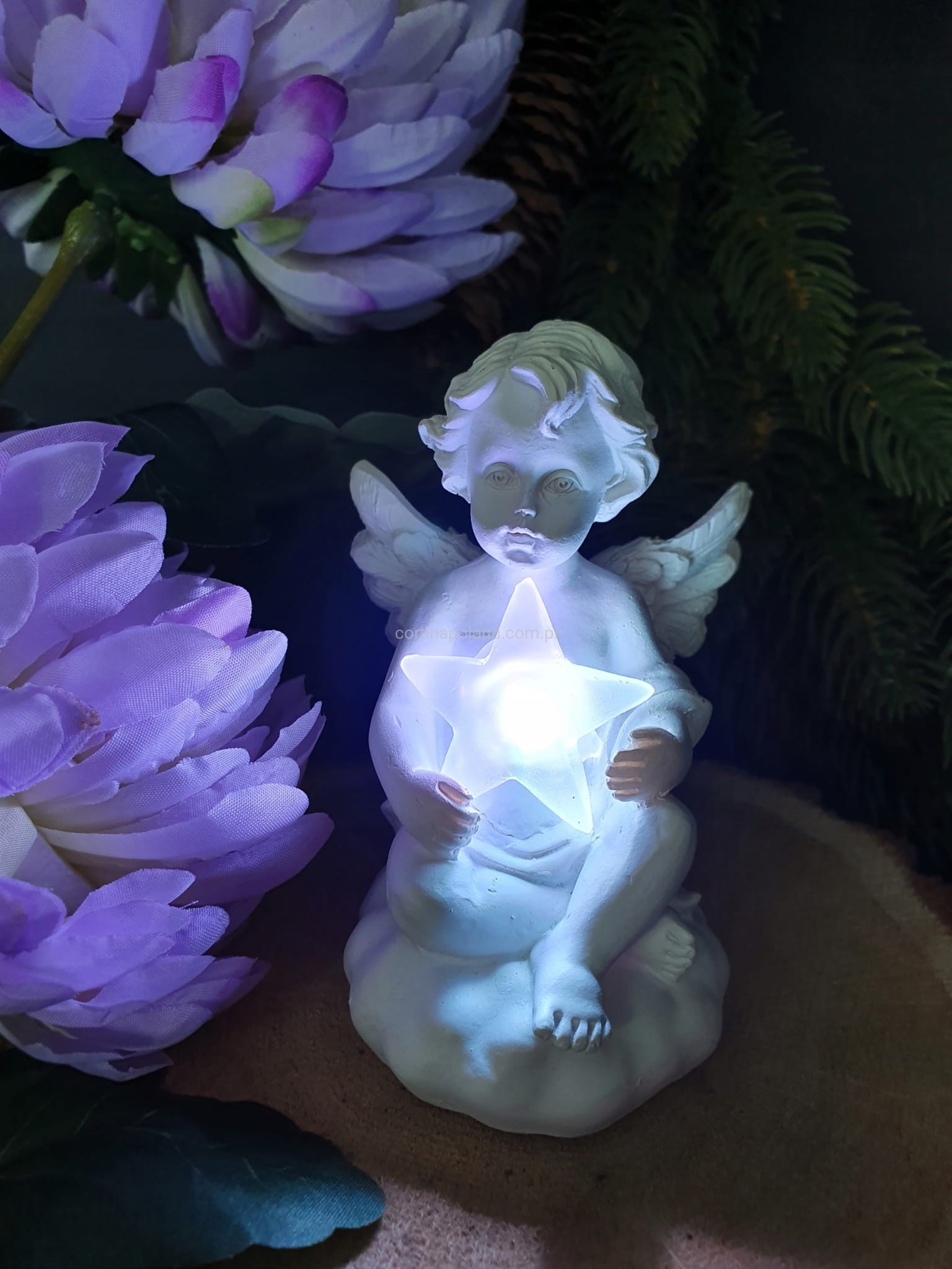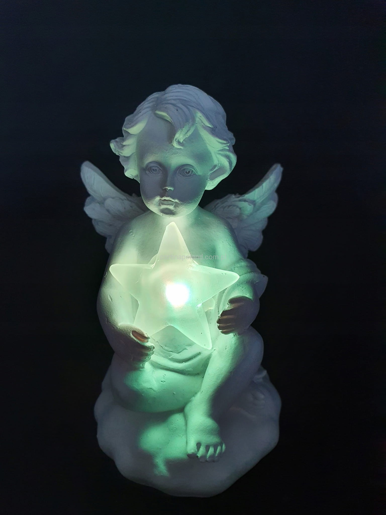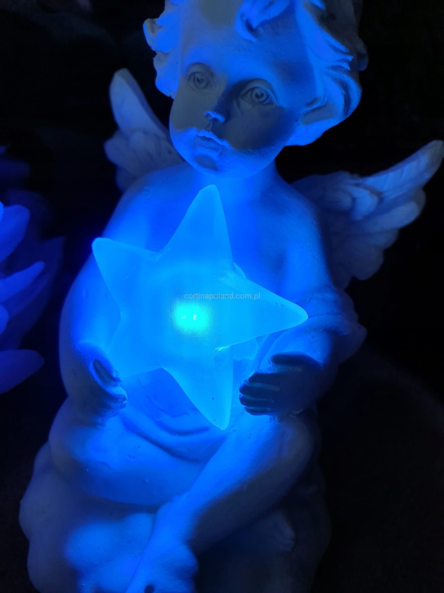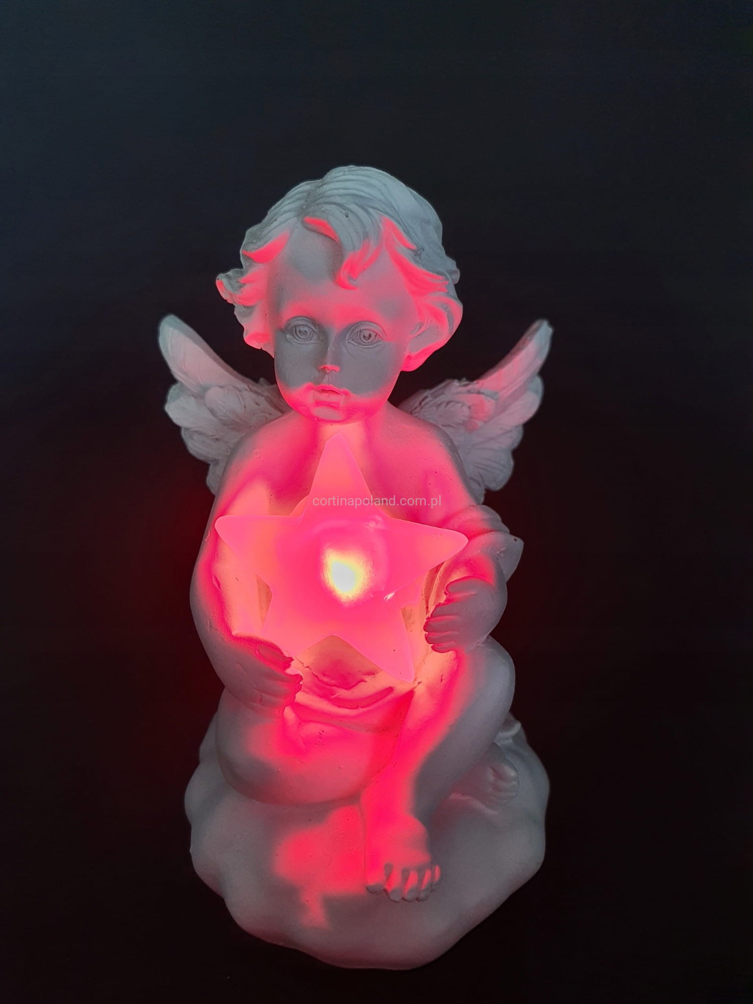 Dzięki zastosowaniu energooszczędnej diody Led jako źródło światła prezentuje niesamowity efekt oświetlając postać Aniołka 7 kolorami.