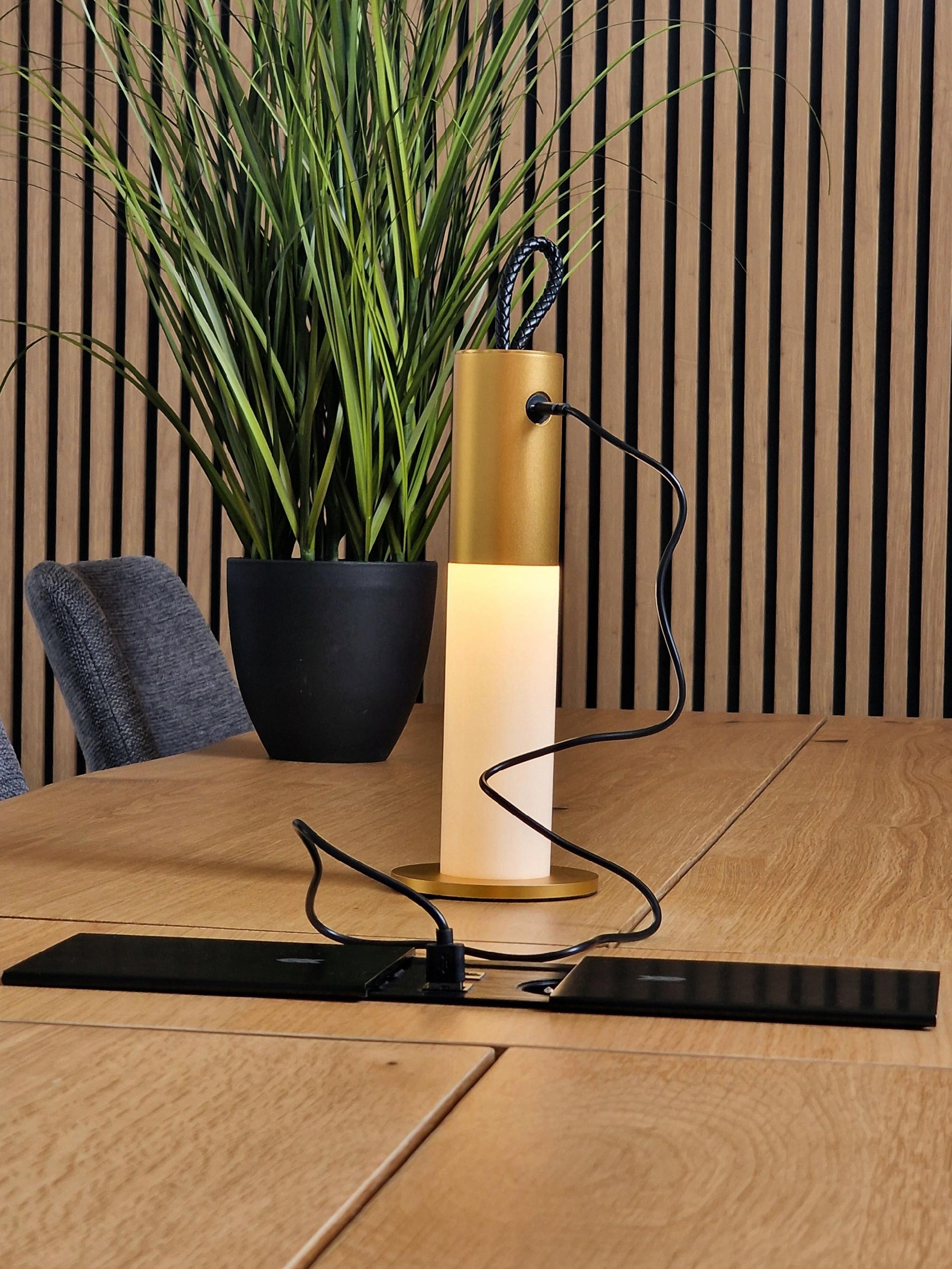 - Port do ładowania estetycznie umieszczony został pod kloszem lampy.