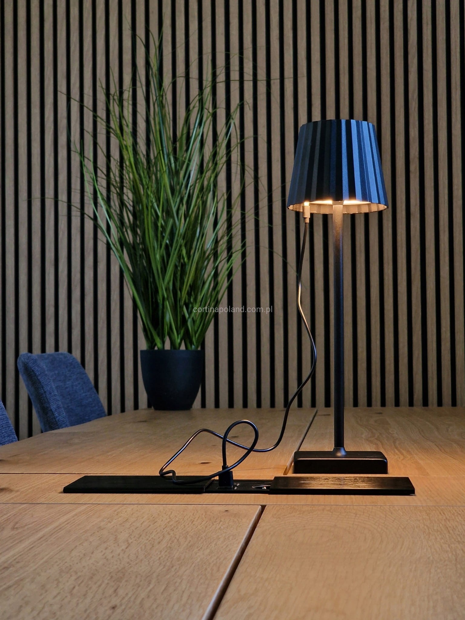 - Port do ładowania estetycznie umieszczony został pod kloszem lampy.