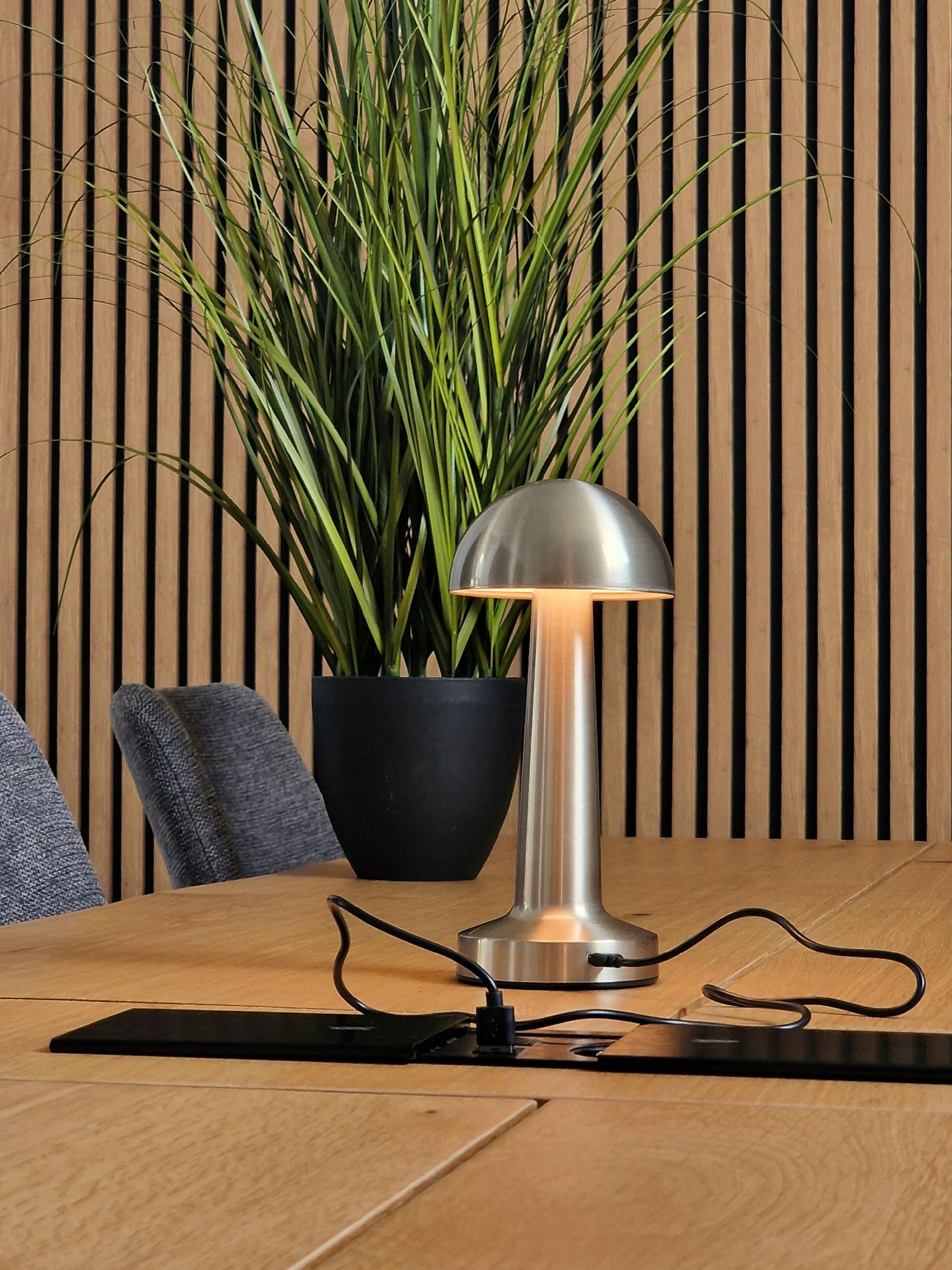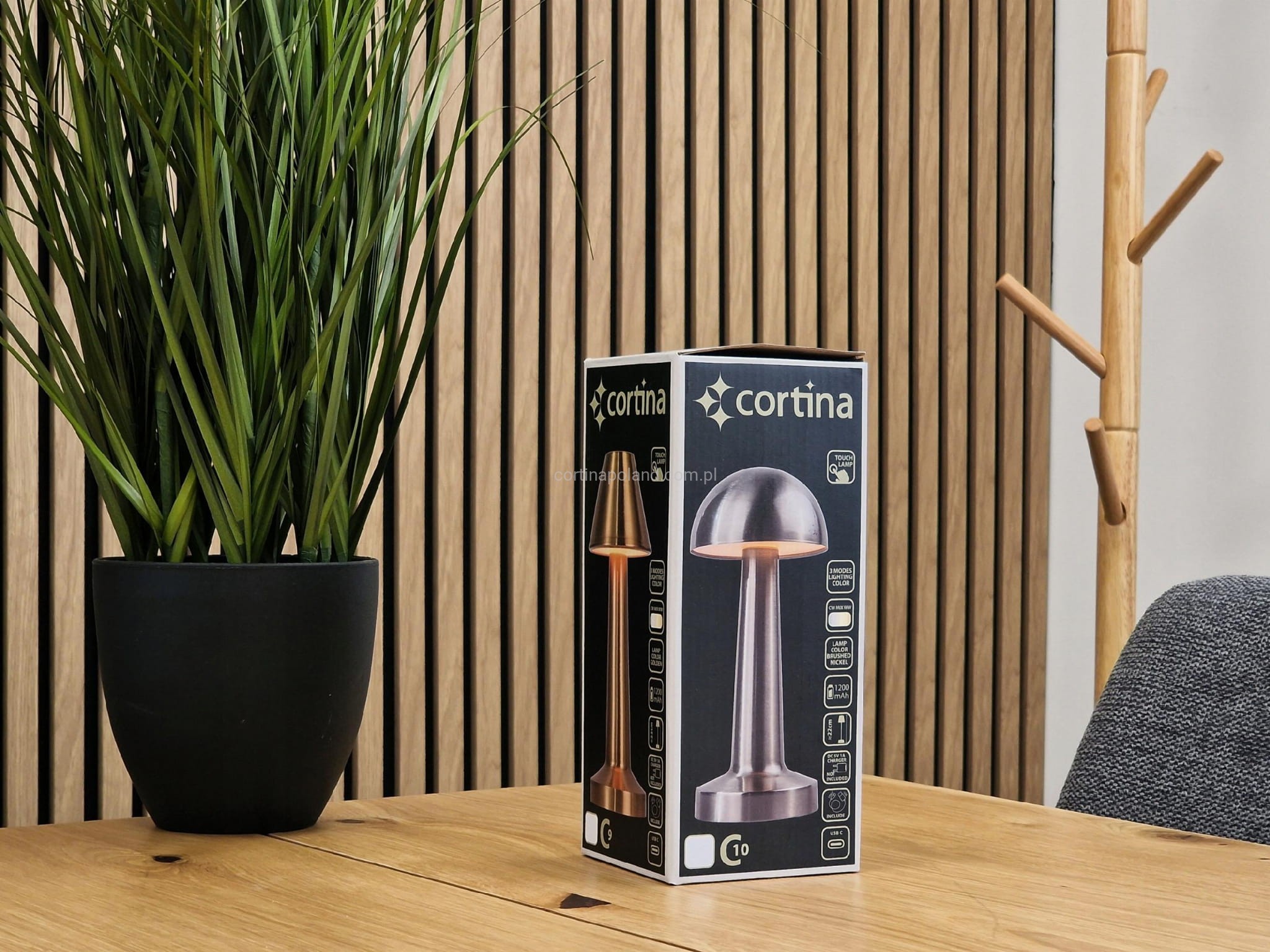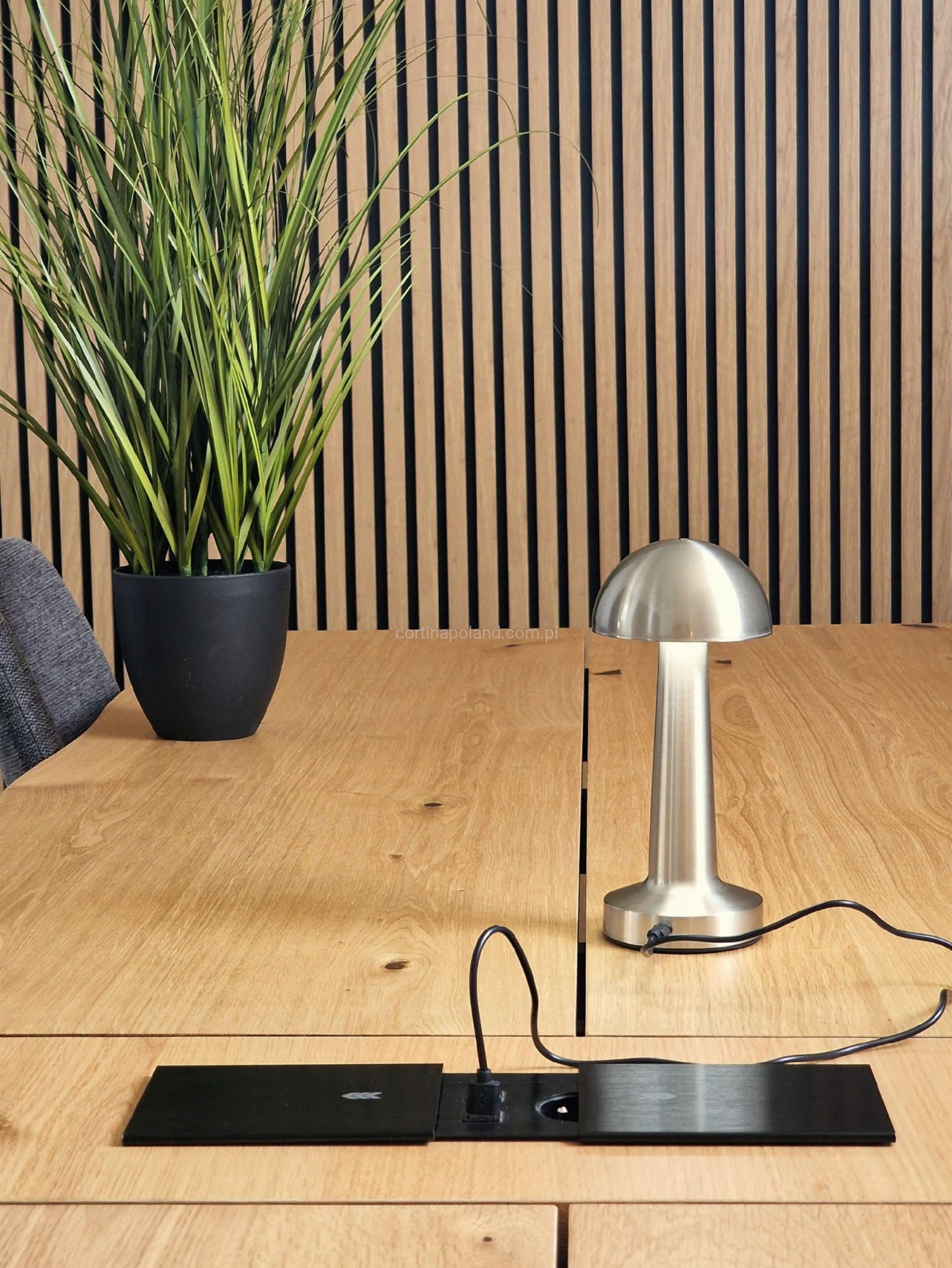 - Port do ładowania estetycznie umieszczony został pod kloszem lampy.