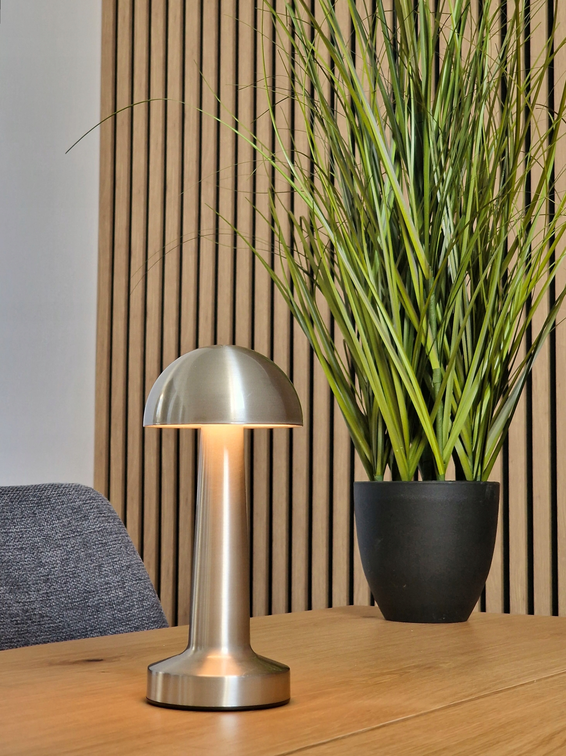 Lampa stołowa LED metalowa srebrna biurko grzybek dotykowy panel [1/30]
