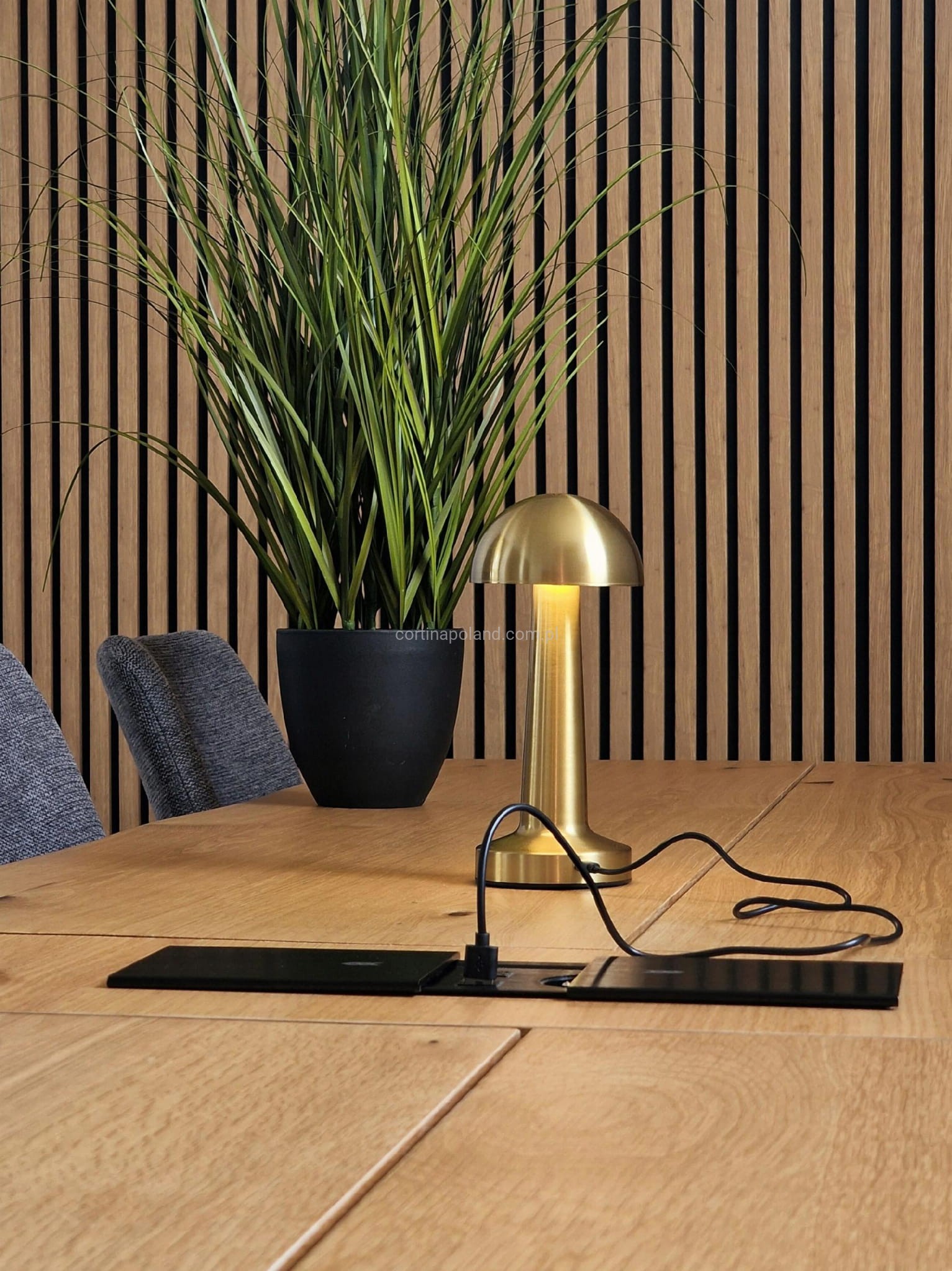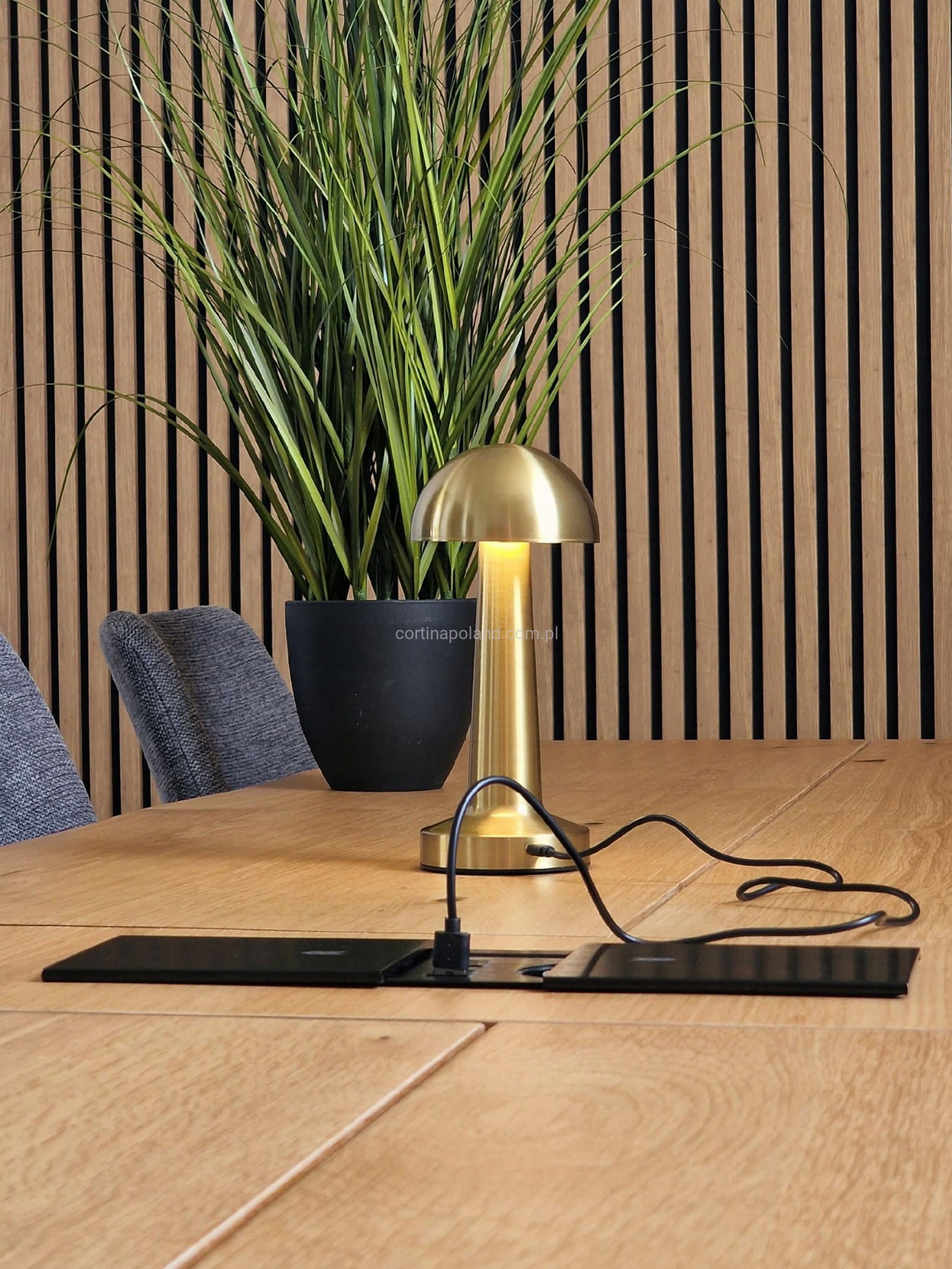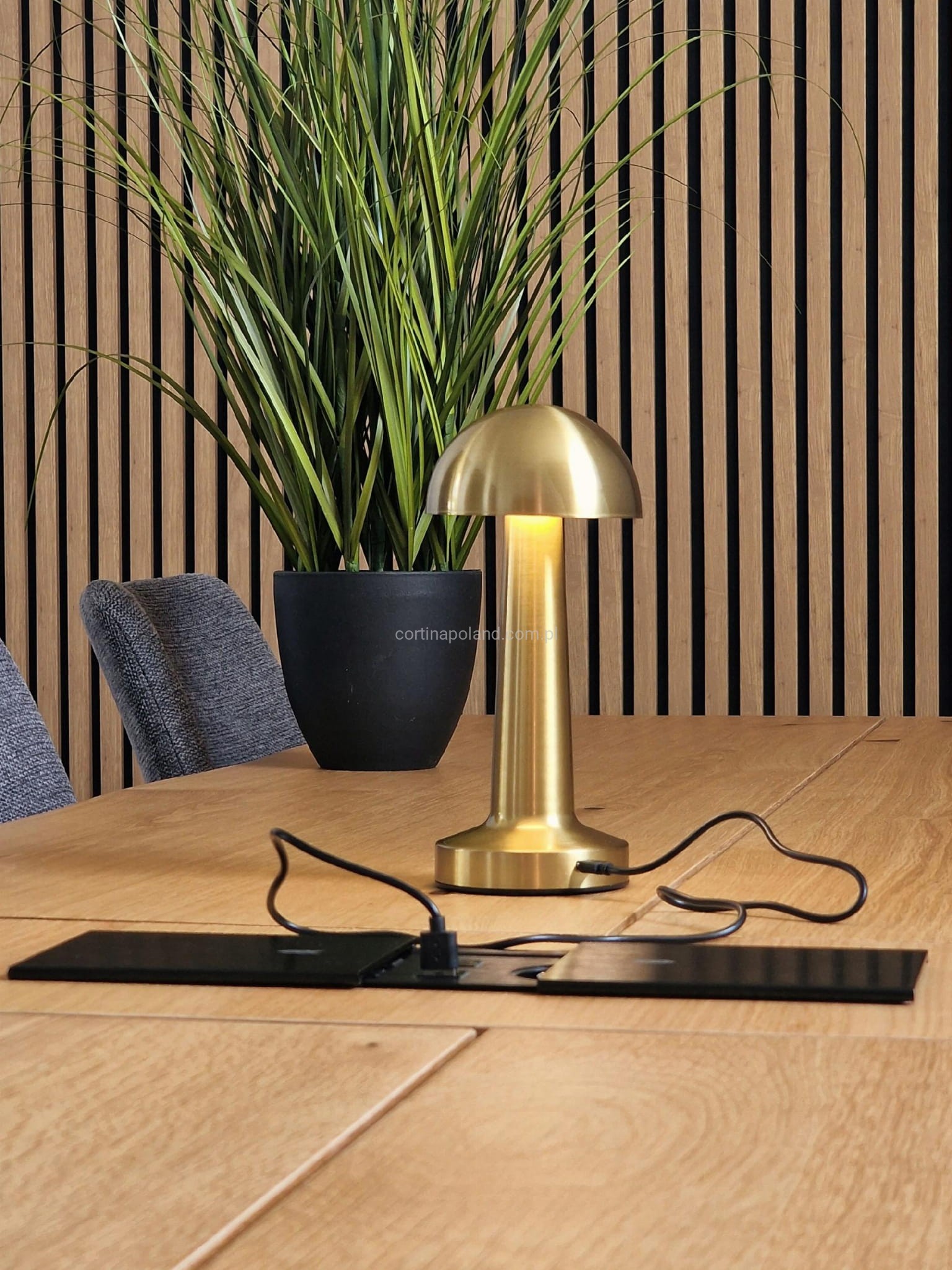 - Port do ładowania estetycznie umieszczony został pod kloszem lampy.