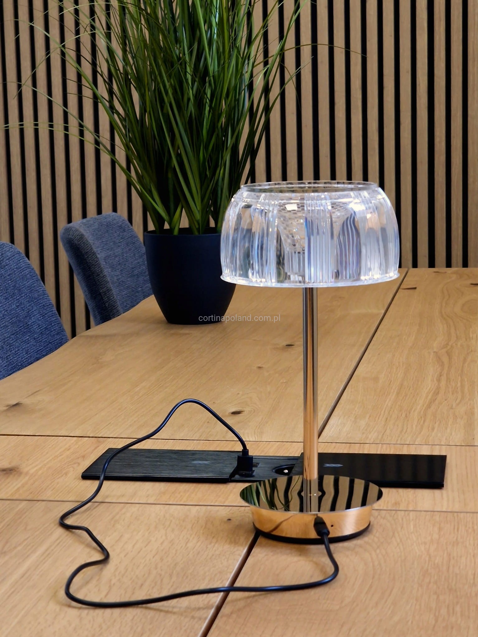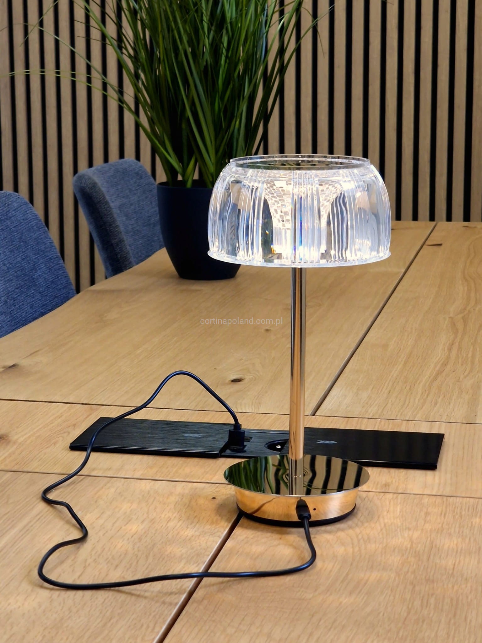 - Port do ładowania estetycznie umieszczony został pod kloszem lampy.
