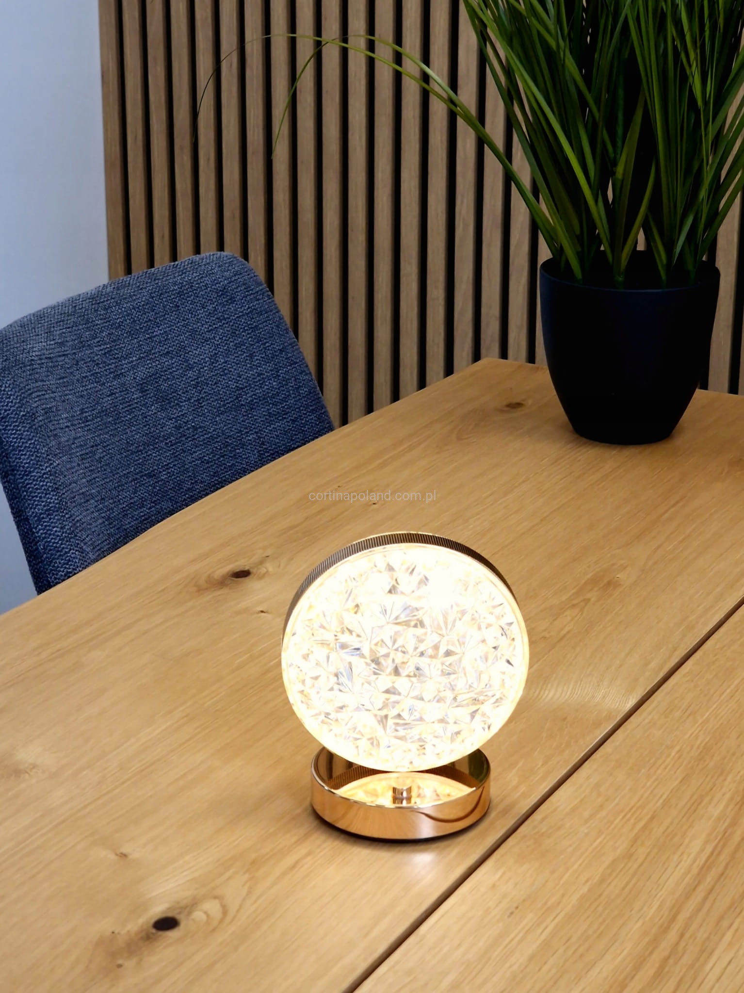 Lampa stołowa LED metalowa złota retro lampka kryształowa [1/20]