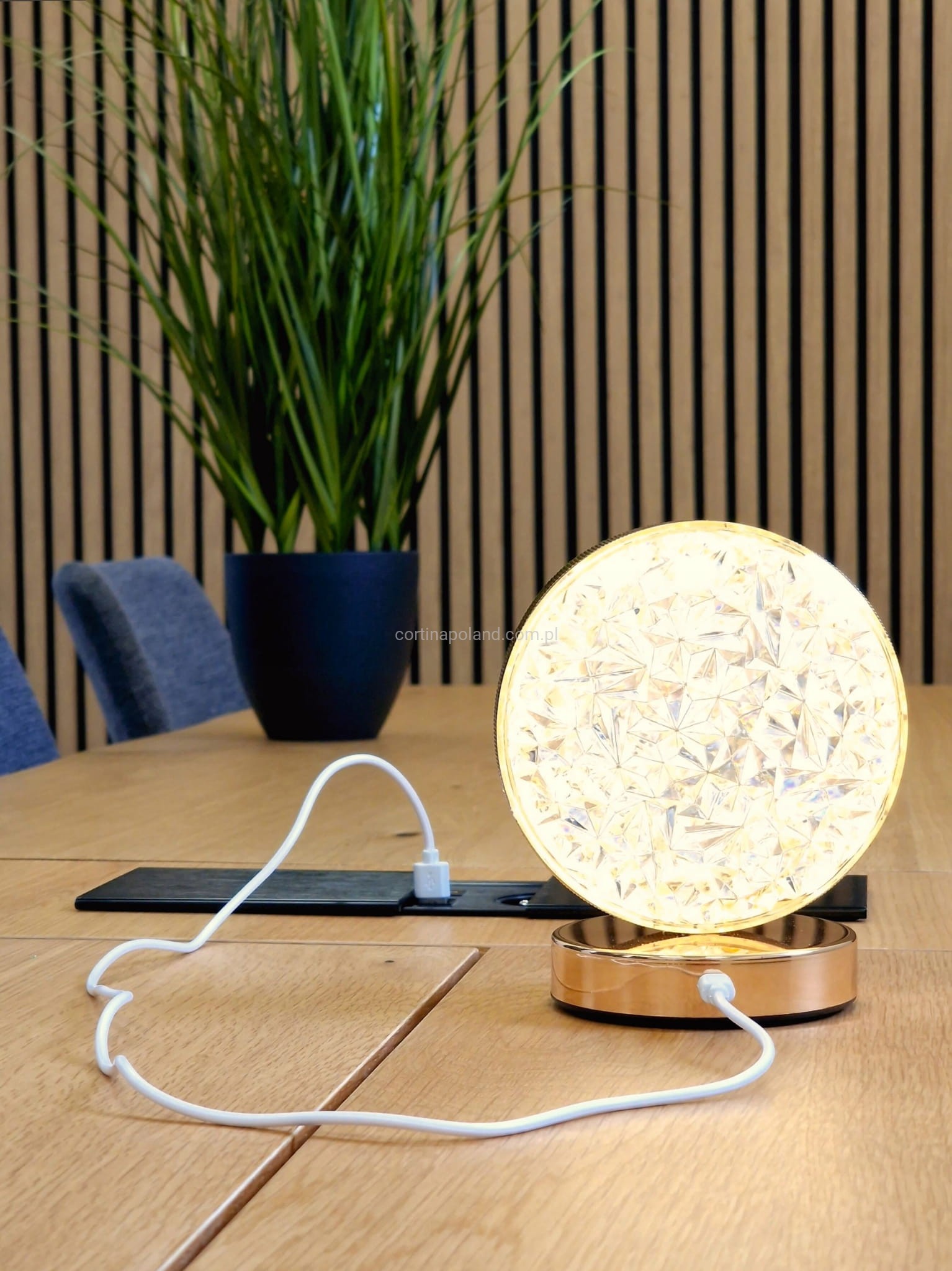- Port do ładowania estetycznie umieszczony został pod kloszem lampy.