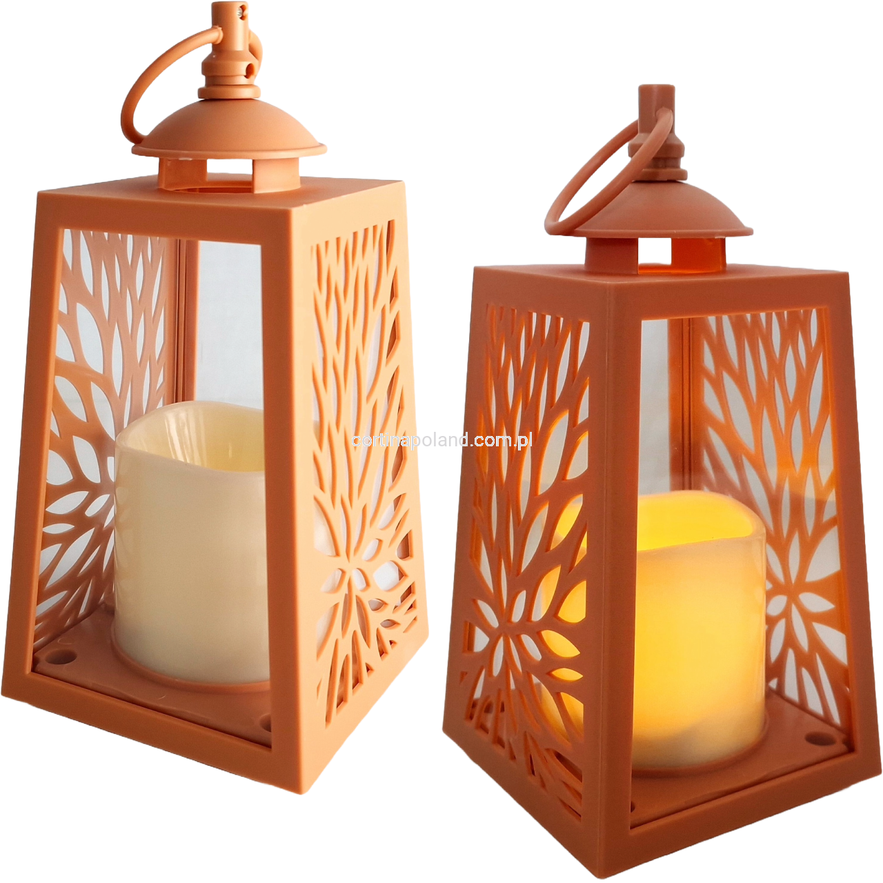 Latarenka ażurowa świeca LED 2 x R6 - łososiowa [12/12]