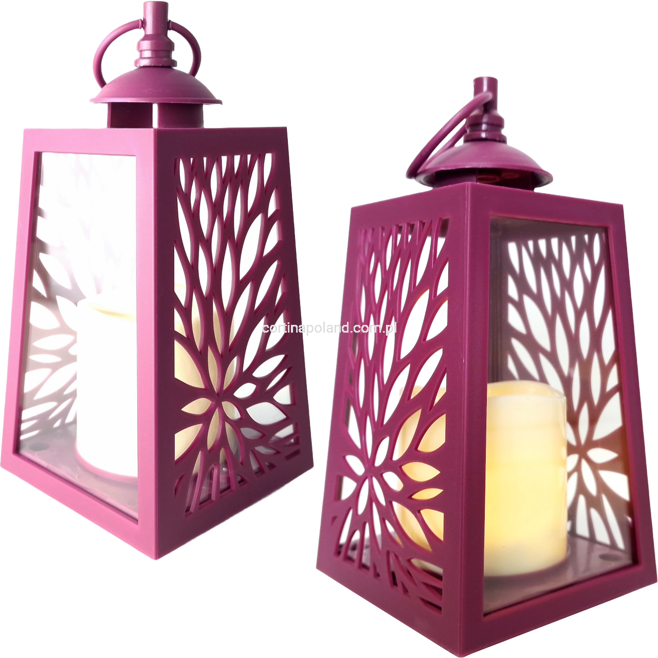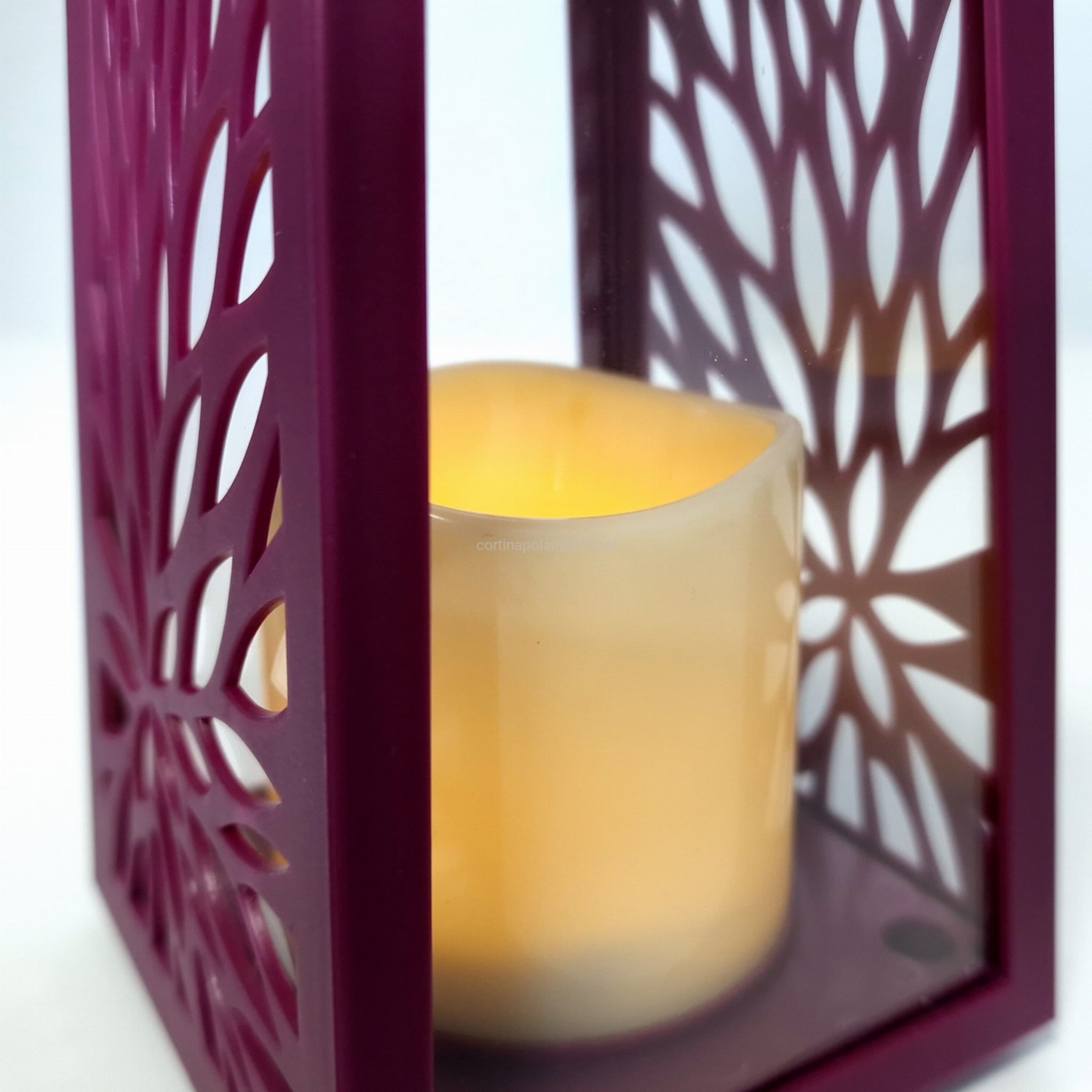 Latarenka ażurowa świeca LED 2 x R6 - purpurowa [12/12]