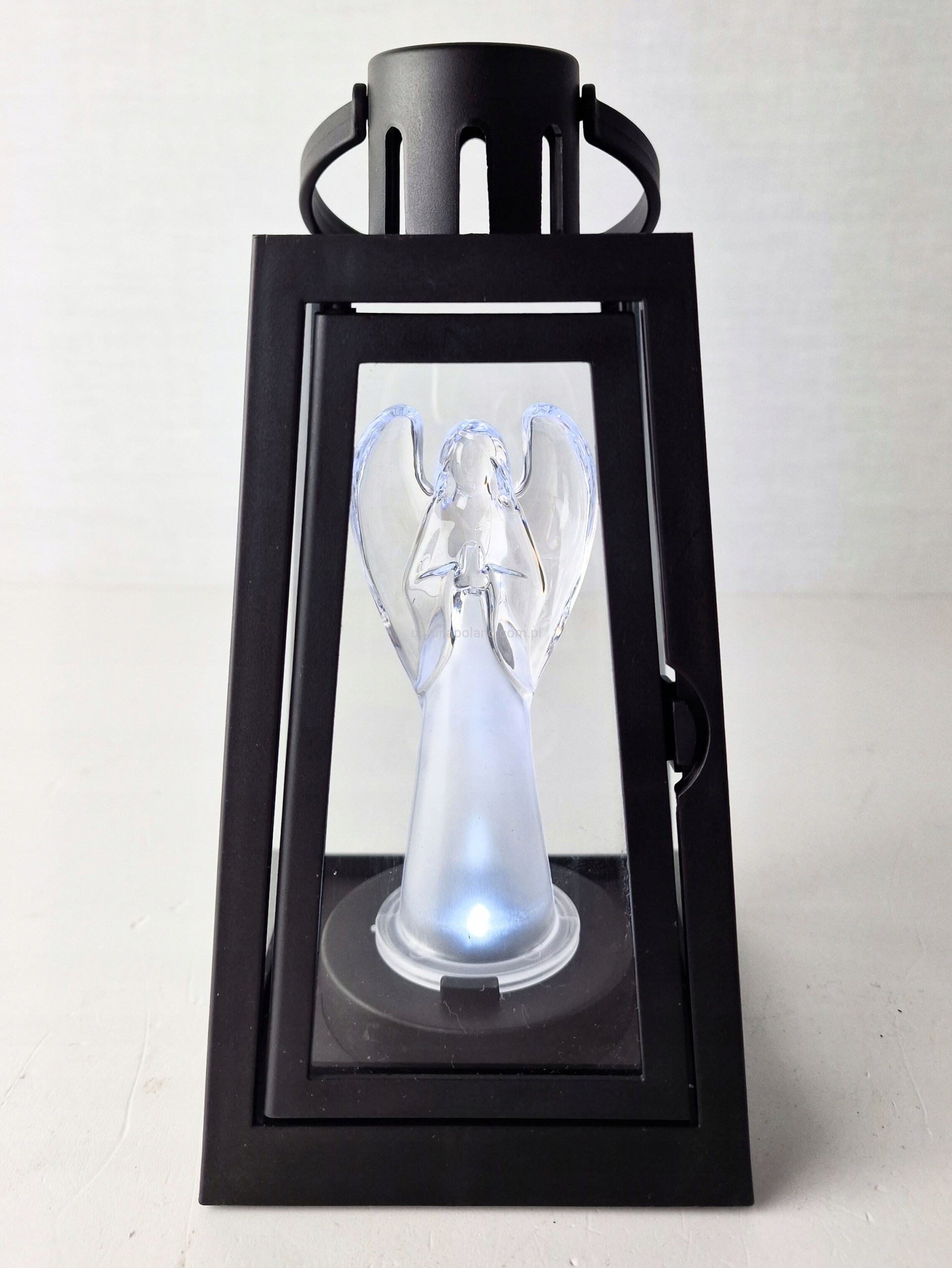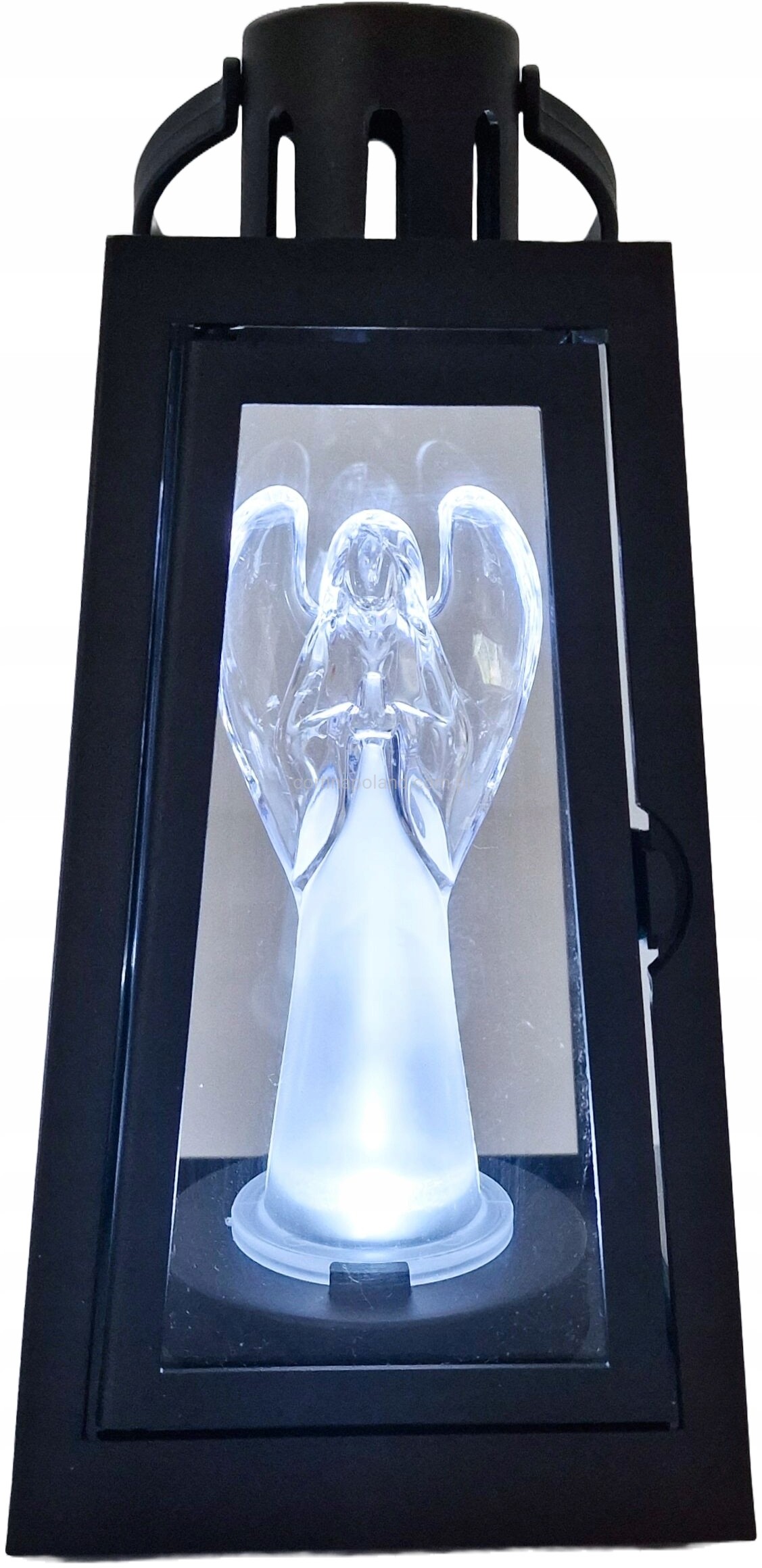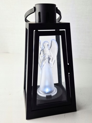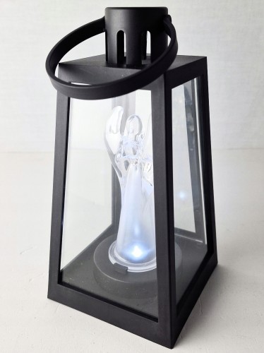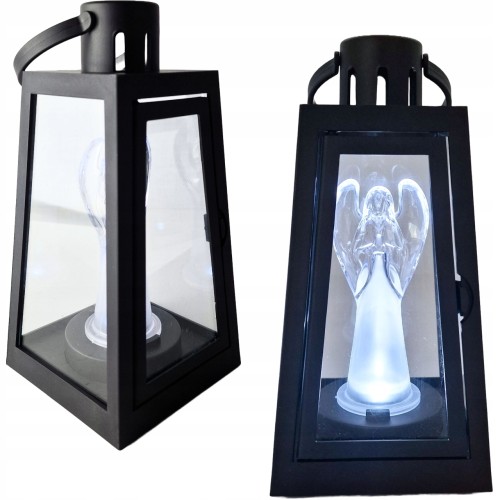 CZARNA LATARENKA DEKORACYJNA Z ANIOŁKIEM LED