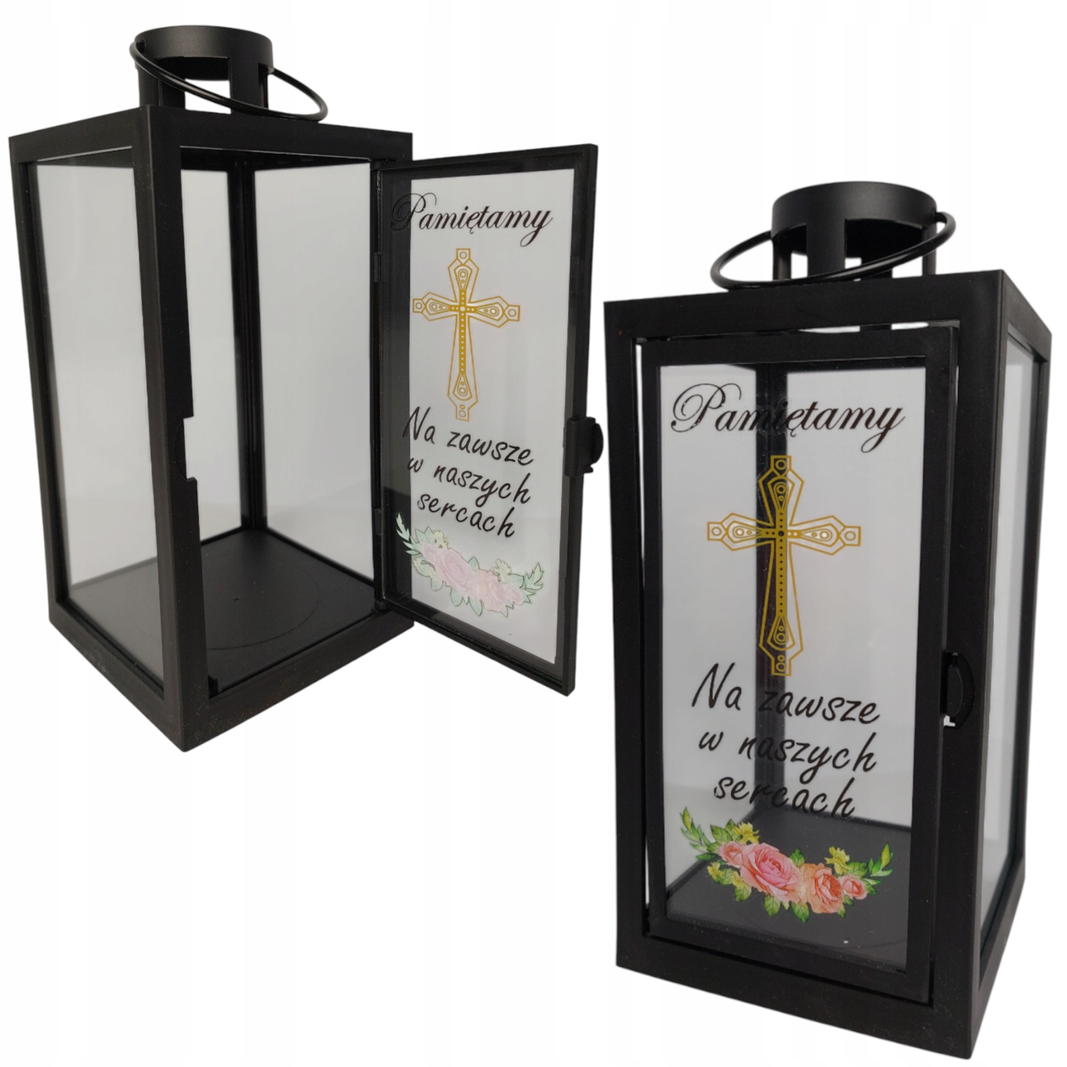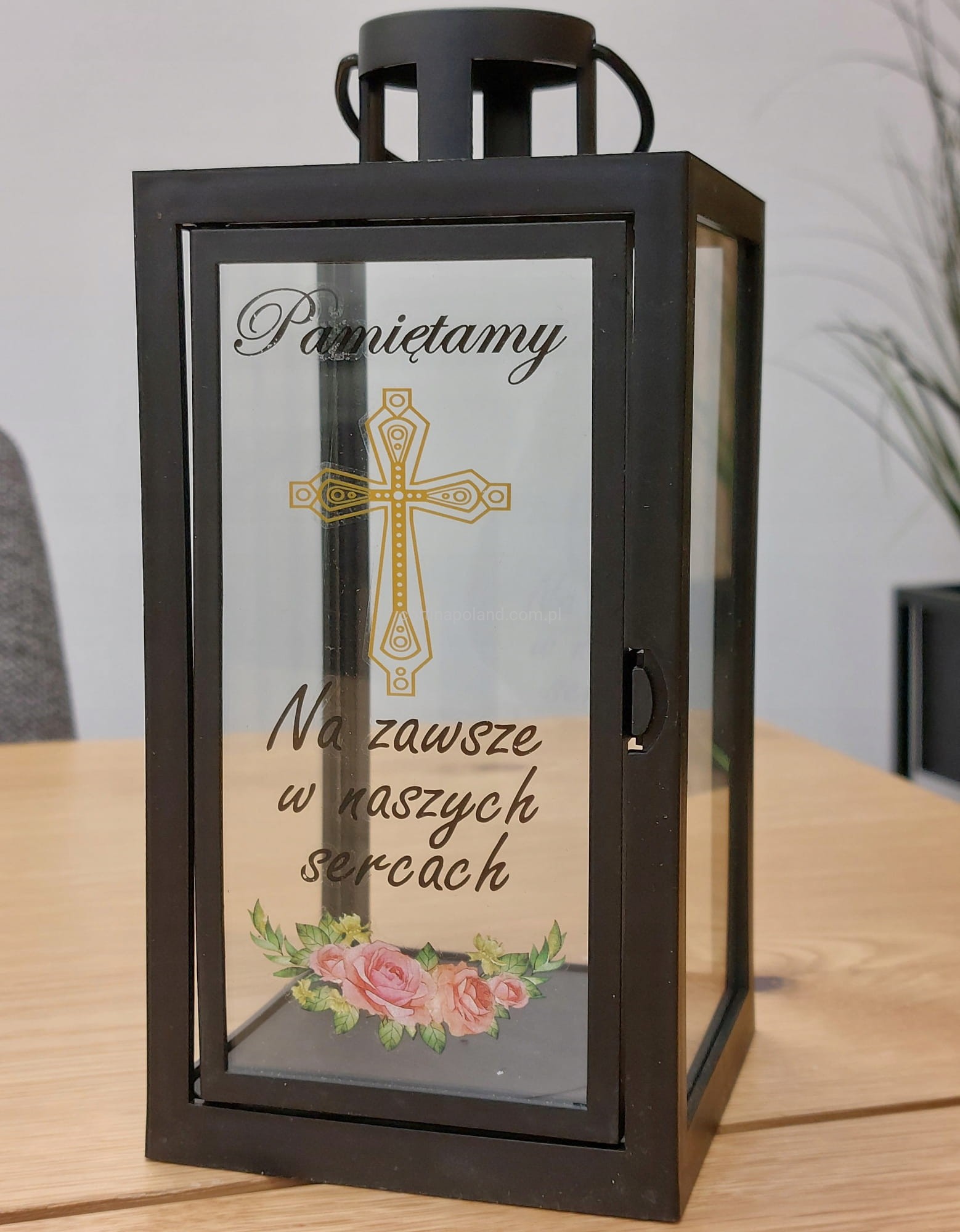 CZARNA LATARENKA DEKORACYJNA Z NAPISEM " PAMIĘTAMY" - 21 CM