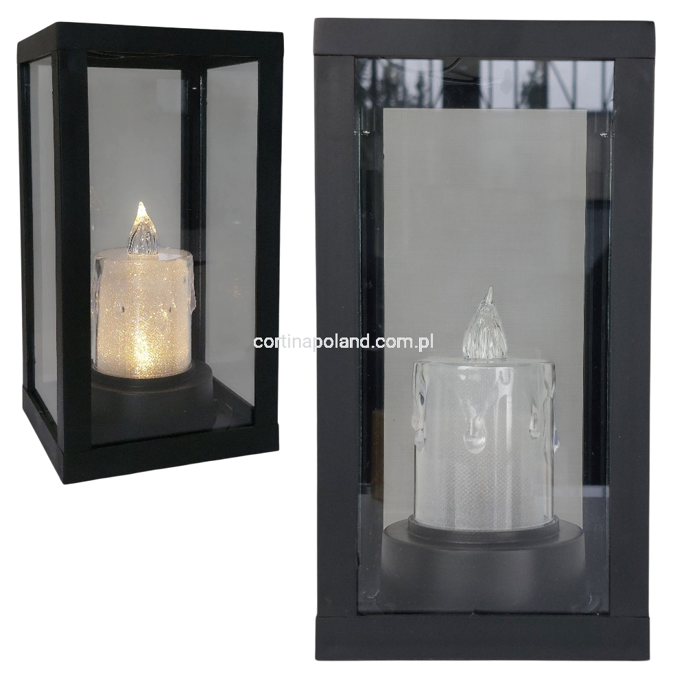 CZARNA LATARENKA Z ŚWIECĄ LED ZASILANA ENERGIĄ SŁONECZNĄ