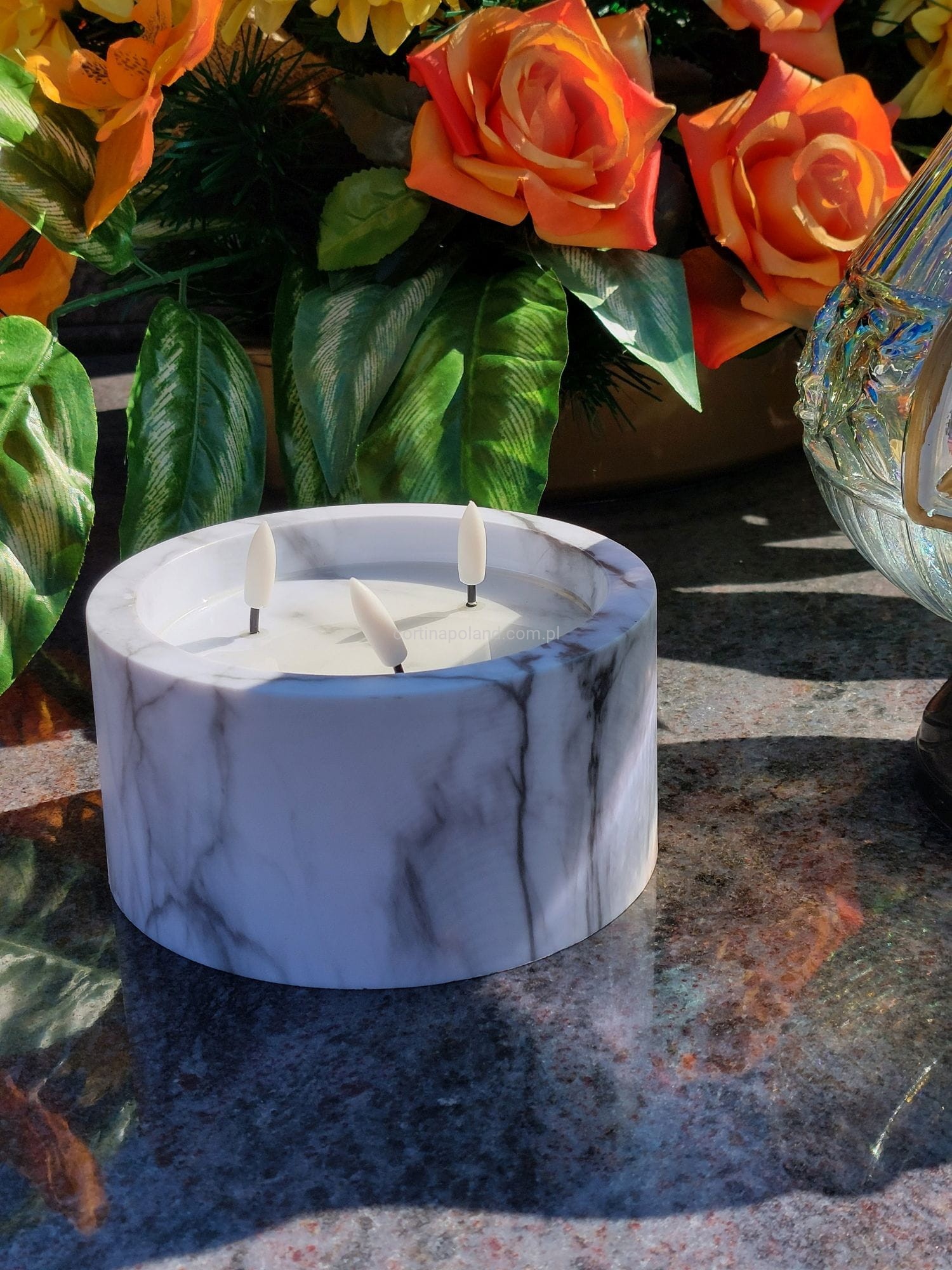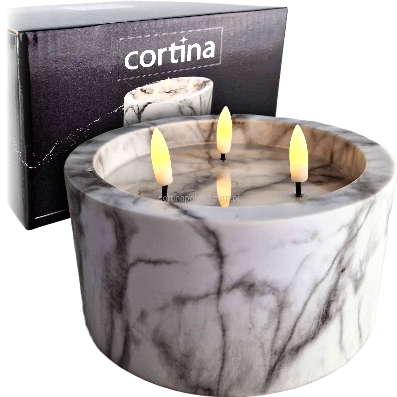 Świeca 3 LED efekt marmuru 15cm x 8cm GREY [1/12]