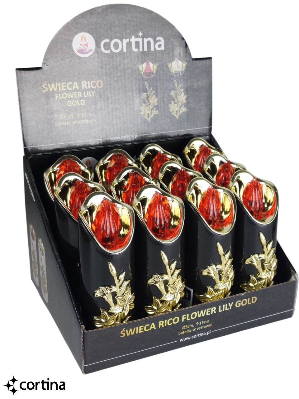 Świeca LED na baterie RICO FLOWER LILIA 15 cm BG/RED [12/72]