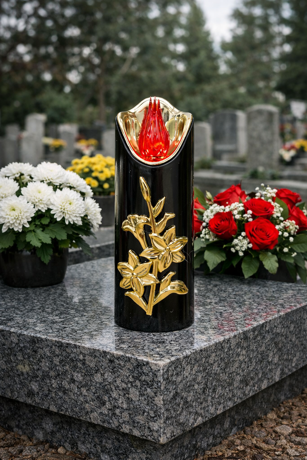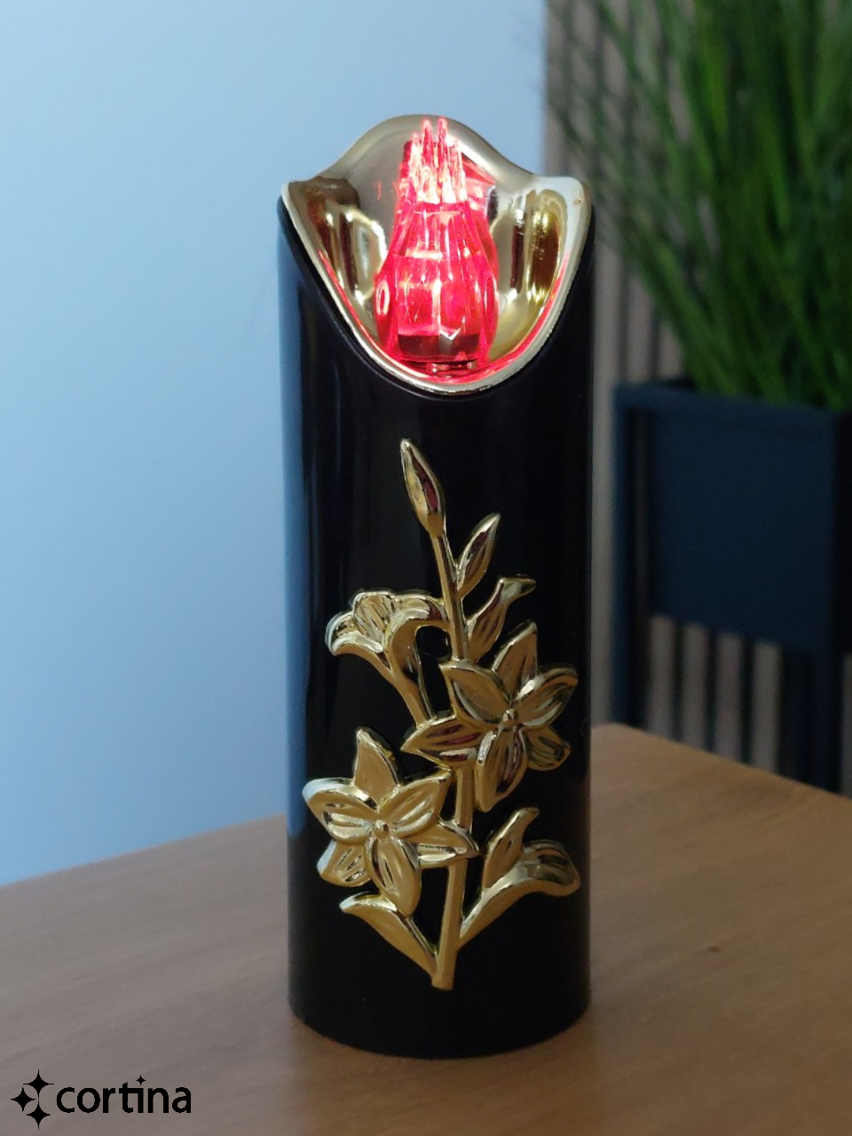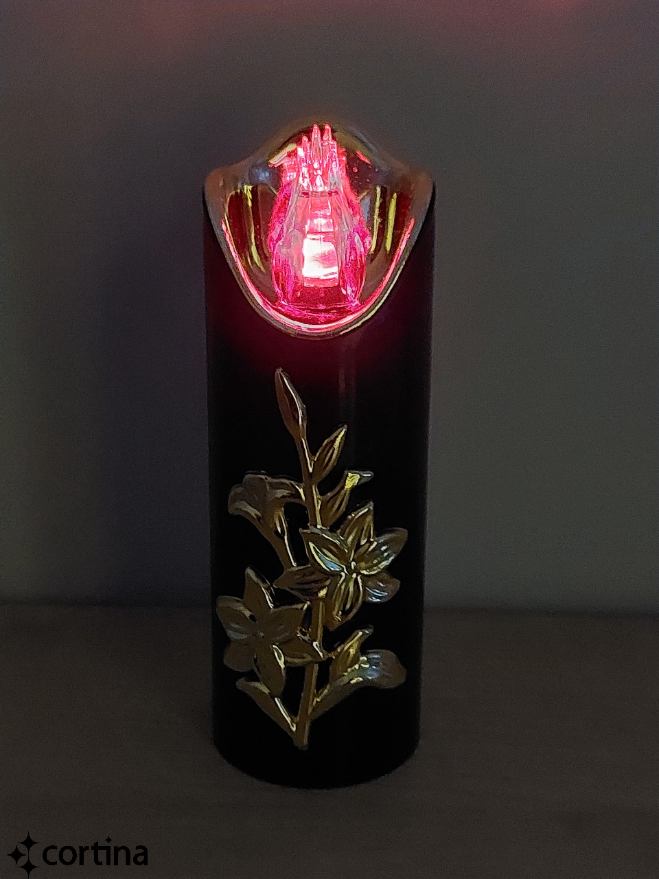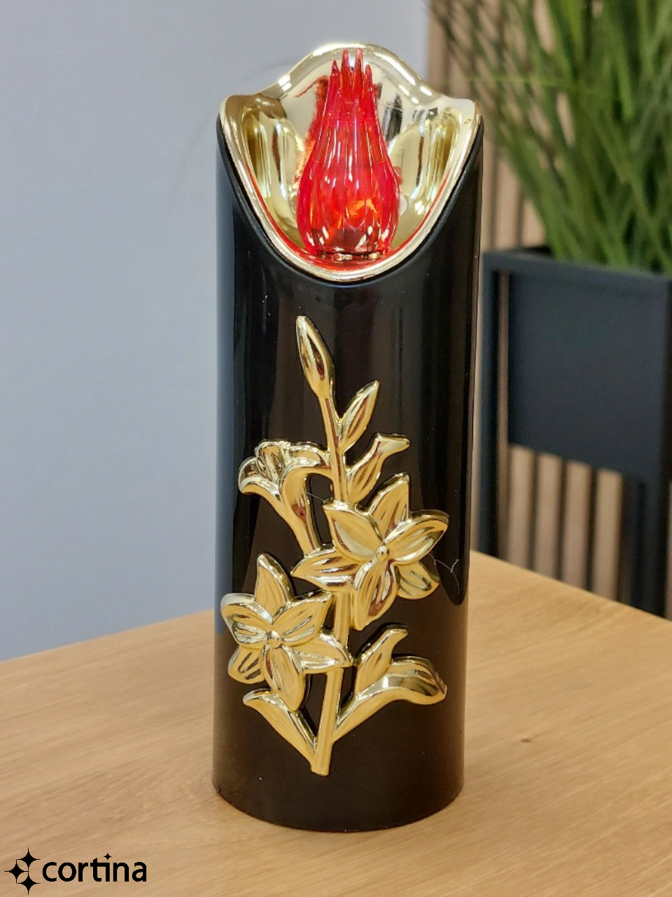 ŚWIECA LED RICO Z LILIĄ 15 CM NA BATERIE - CZARNA