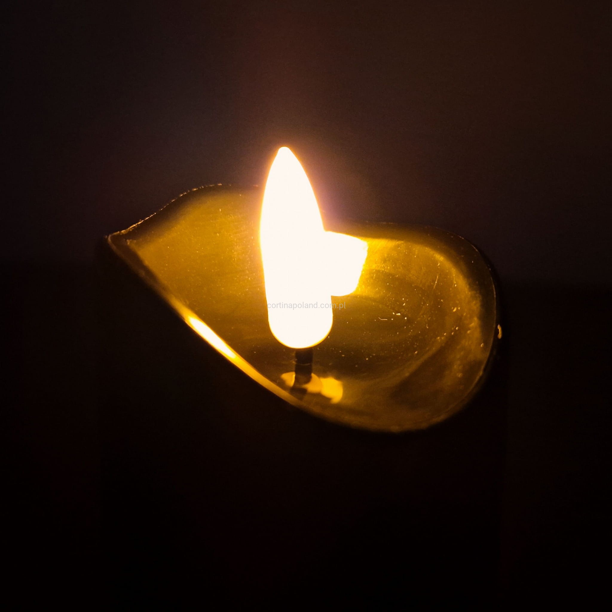 Podczas działania żarówka delikatnie przygasa, przez co efekt wizualny jest zbliżony do światła, które dają prawdziwe świece woskowe z palącym się knotem.