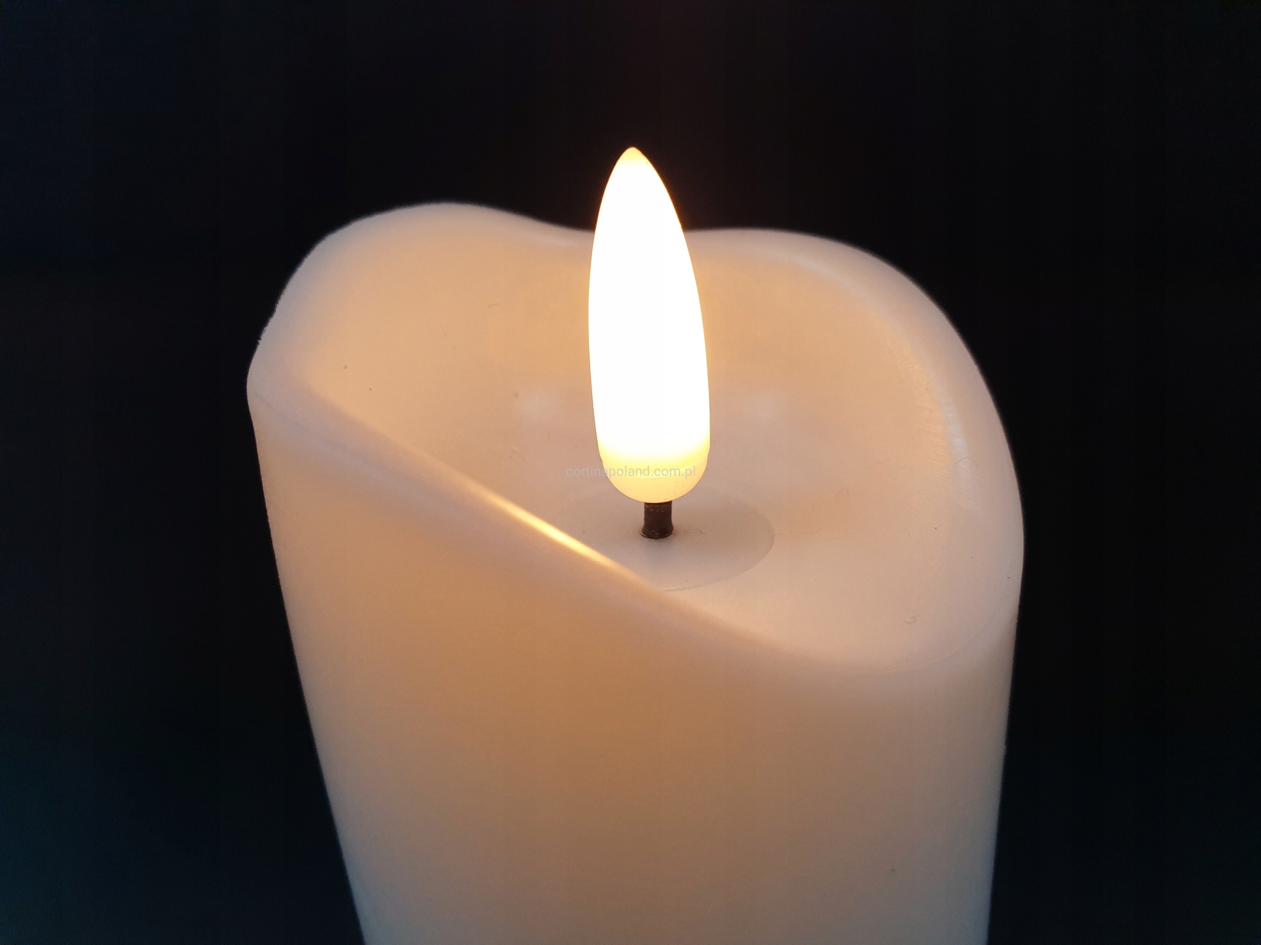 Podczas działania żarówka delikatnie przygasa, przez co efekt wizualny jest zbliżony do światła, które dają prawdziwe świece woskowe z palącym się knotem.