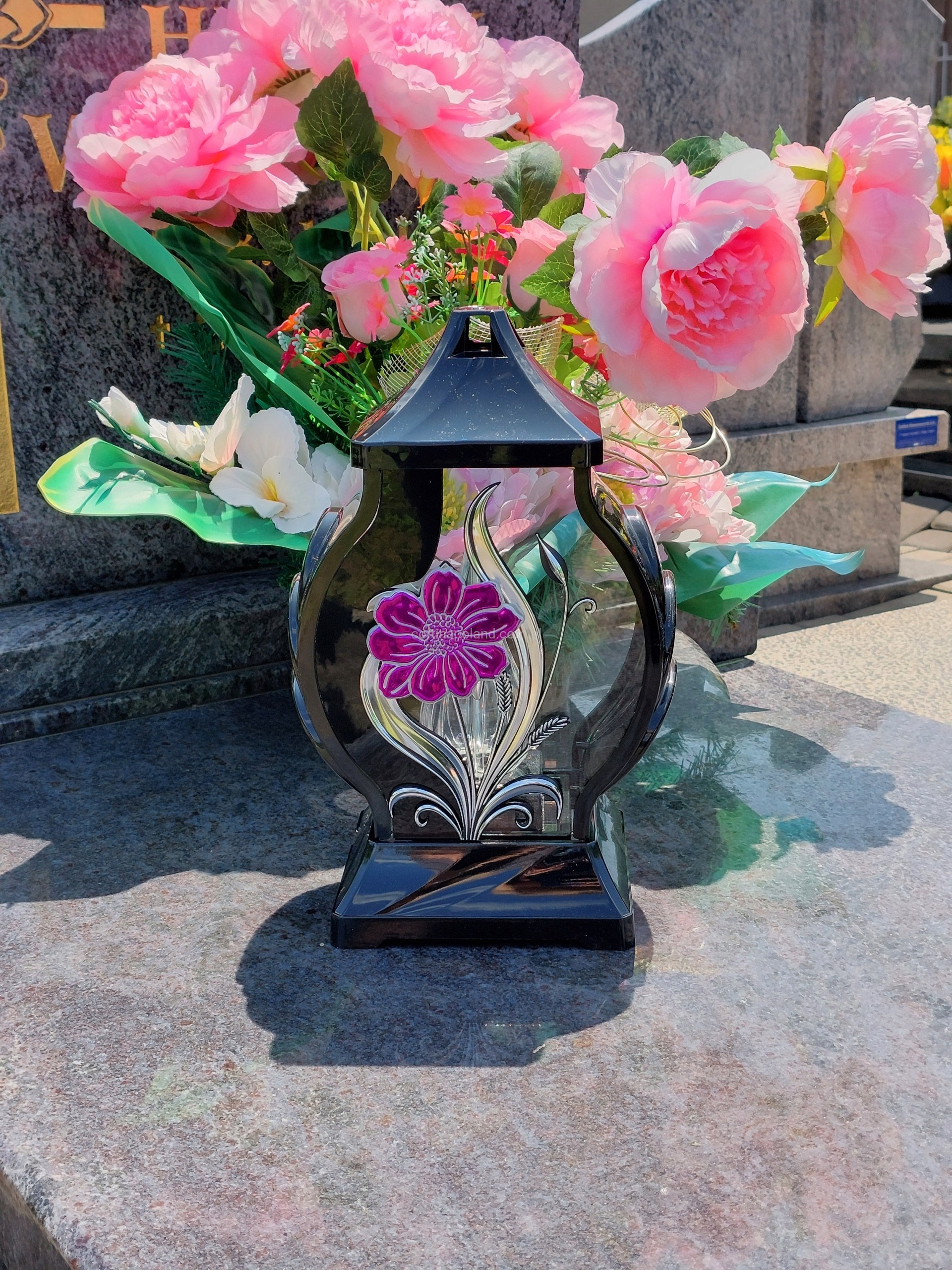 Znicz dekoracyjny z aplikacją róży 29,5cm