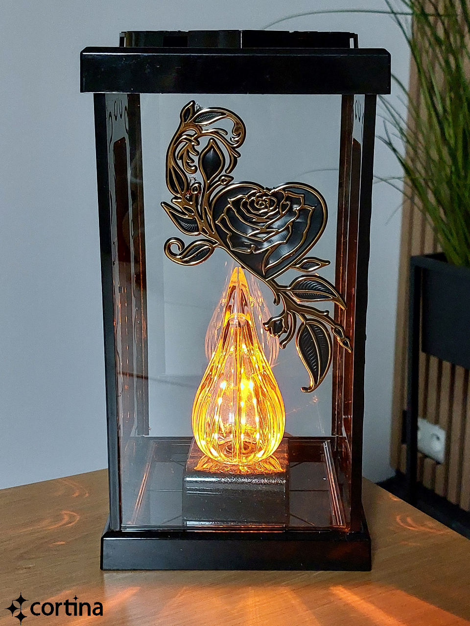 ✅ Znicz szklany ze złotym sercem i różą – nowoczesny design na grób