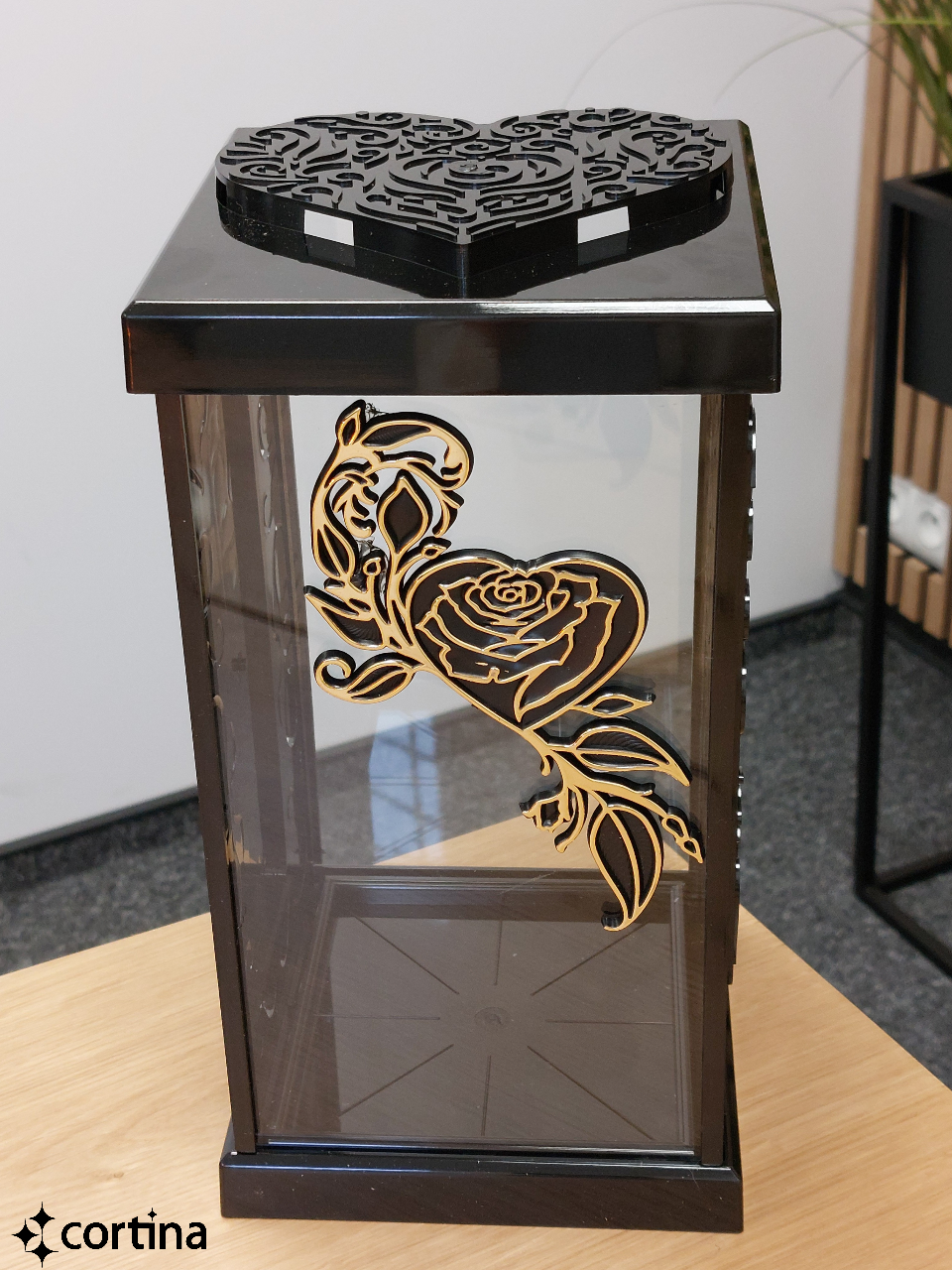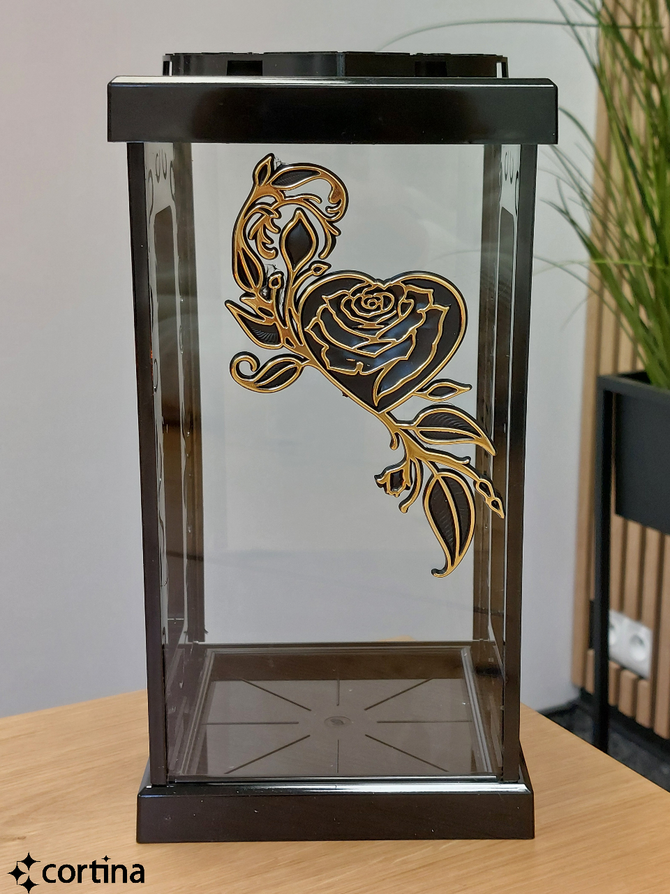 ✅ Dekoracyjny znicz nagrobny z pięknym motywem złotego serca z różą który łączy klasykę i nowoczesność. Idealny sposób na oddanie hołdu bliskim w elegancki i stylowy sposób.