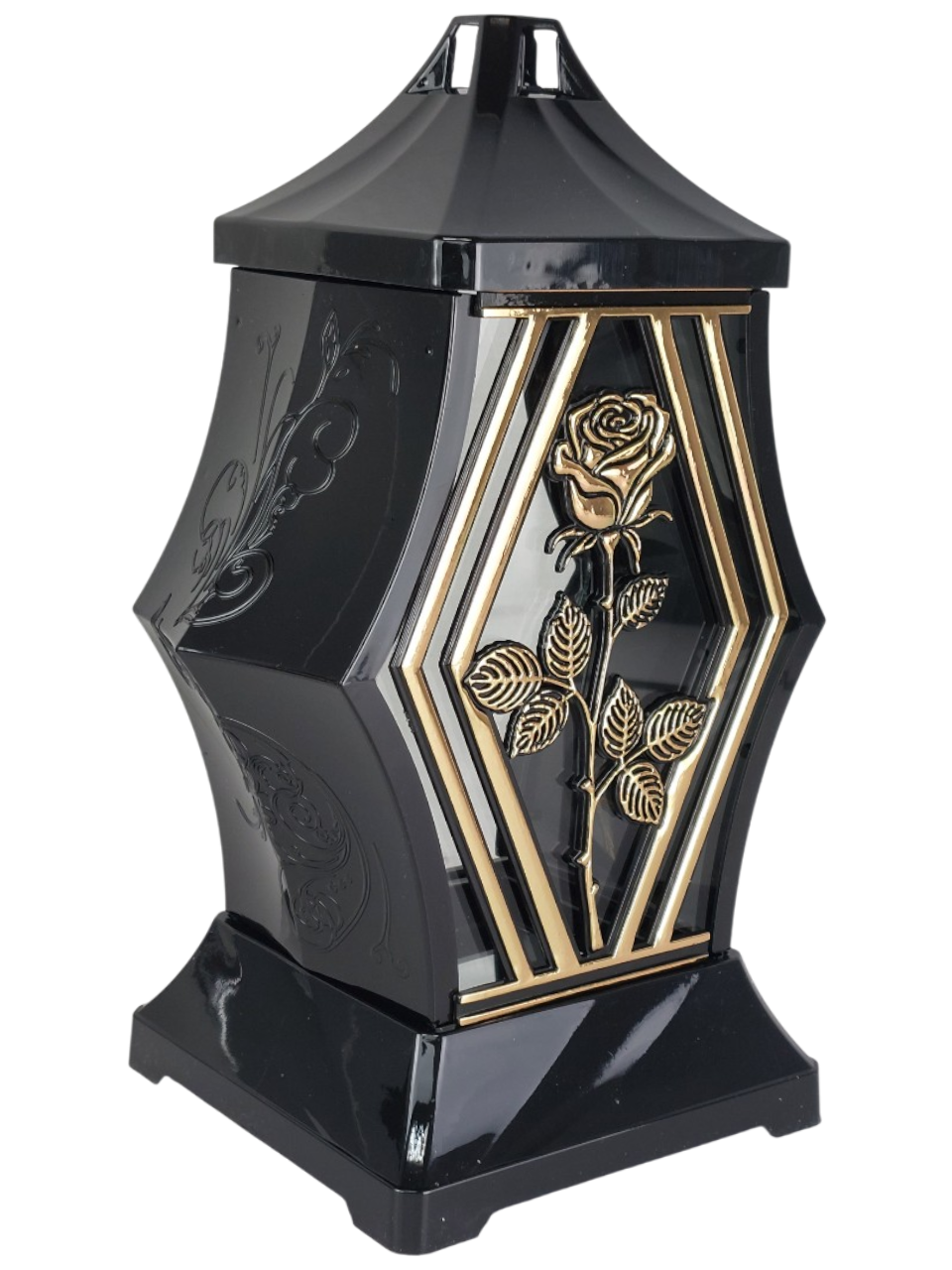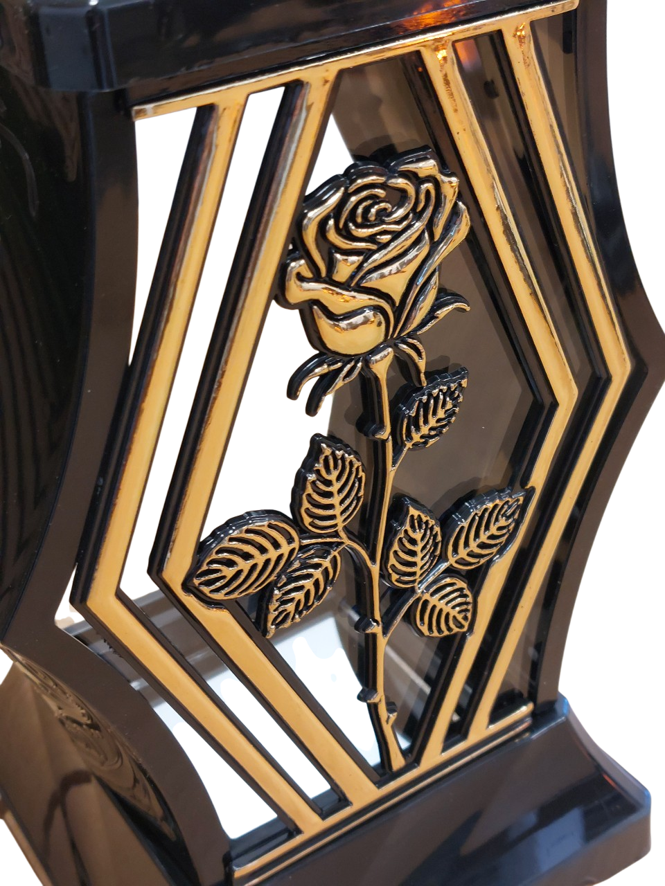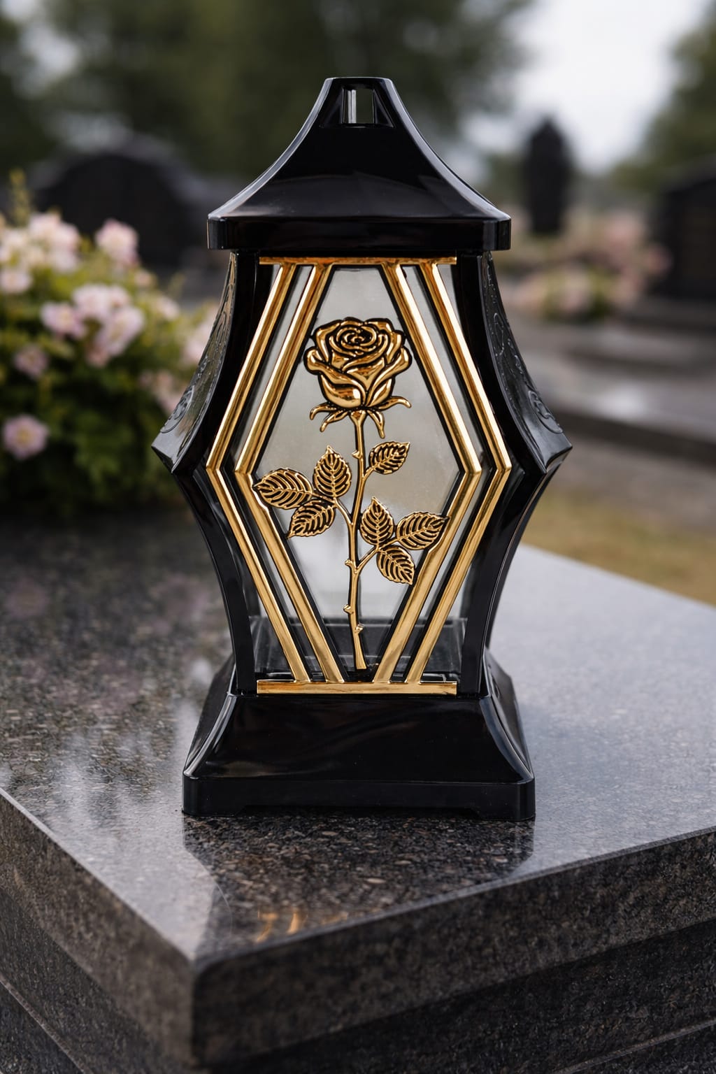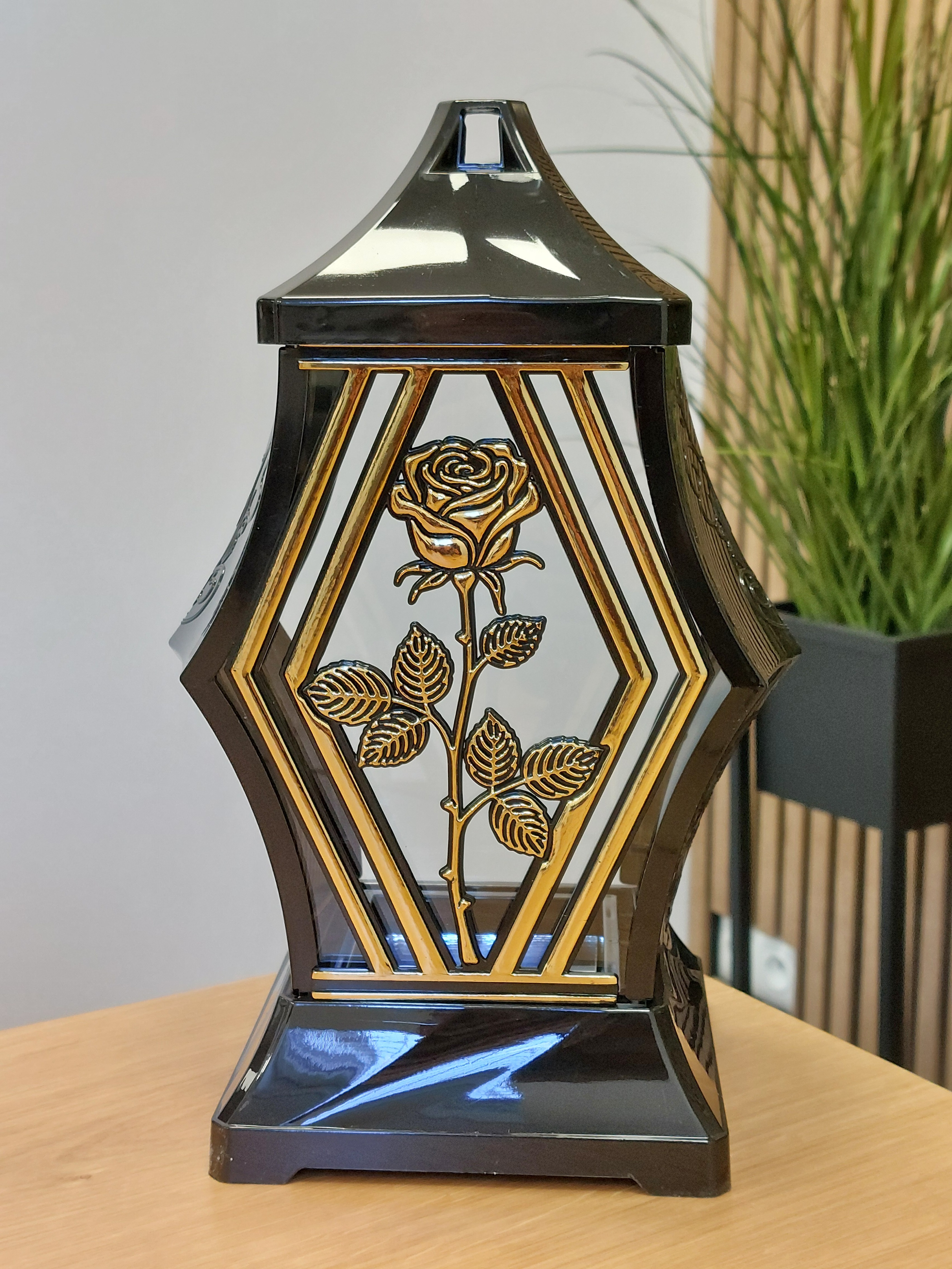 ✅ Dekoracyjny znicz nagrobny z pięknym motywem złotej róży, który łączy klasykę i nowoczesność. Idealny sposób na oddanie hołdu bliskim w elegancki i stylowy sposób.